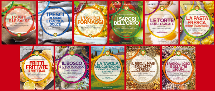 Con questa collana, edita da Bolis edizioni, l’Accademia presenta un viaggio alla scoperta delle tradizioni regionali della cucina italiana così da preservare un patrimonio culturale e identitario unico. Si tratta di un vero e proprio mosaico regionale all’interno del quale è possibile riscoprire la natura, la storia, gli usi e costumi, il linguaggio di una comunità.