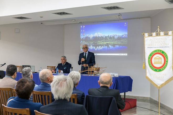 Si è svolto, presso l’Hotel Meridiano di Termoli, il convegno "L’Oro di Termoli – Cucina d’aMare: ieri, oggi e domani", organizzato per celebrare il cinquantennale della Delegazione. L’evento, curato nei dettagli, ha proposto una serie di relazioni sull’evoluzione delle tecniche di pesca e sulla stagionalità del pescato, offrendo un excursus dalla pesca con le paranze a quella con i motopescherecci, dal mare alla tavola passando per la cucina. Particolarmente apprezzata è stata la relazione dedicata alla triglia di Termoli e al ricettario della tradizione, preziosa eredità da salvaguardare e tramandare. Il convegno ha espresso appieno la filosofia dell’Accademia, che considera la tavola come arte, cultura e storia. Il Delegato Italo Sciarretta ha aperto i lavori ricordando che quella della Delegazione è una storia lunga e ricca, ripercorrendone con cura le tappe e concludendo con la commovente consegna a Gildo D’Ascenzo di una targa in memoria del padre Elio, fondatore nel 1975 della prima Delegazione molisana. Il vice Delegato Lombardi ha moderato con competenza i numerosi interventi, mentre sono stati molto graditi i saluti del Sindaco, del Presidente della Regione e del Senatore Costanzo Della Porta. La giornata si è conclusa con la conviviale accademica nella panoramica sala dell’hotel e con la consegna agli ospiti di un ricettario con quindici schede dedicate alla cucina del pesce a Termoli e alle immagini della città antica.