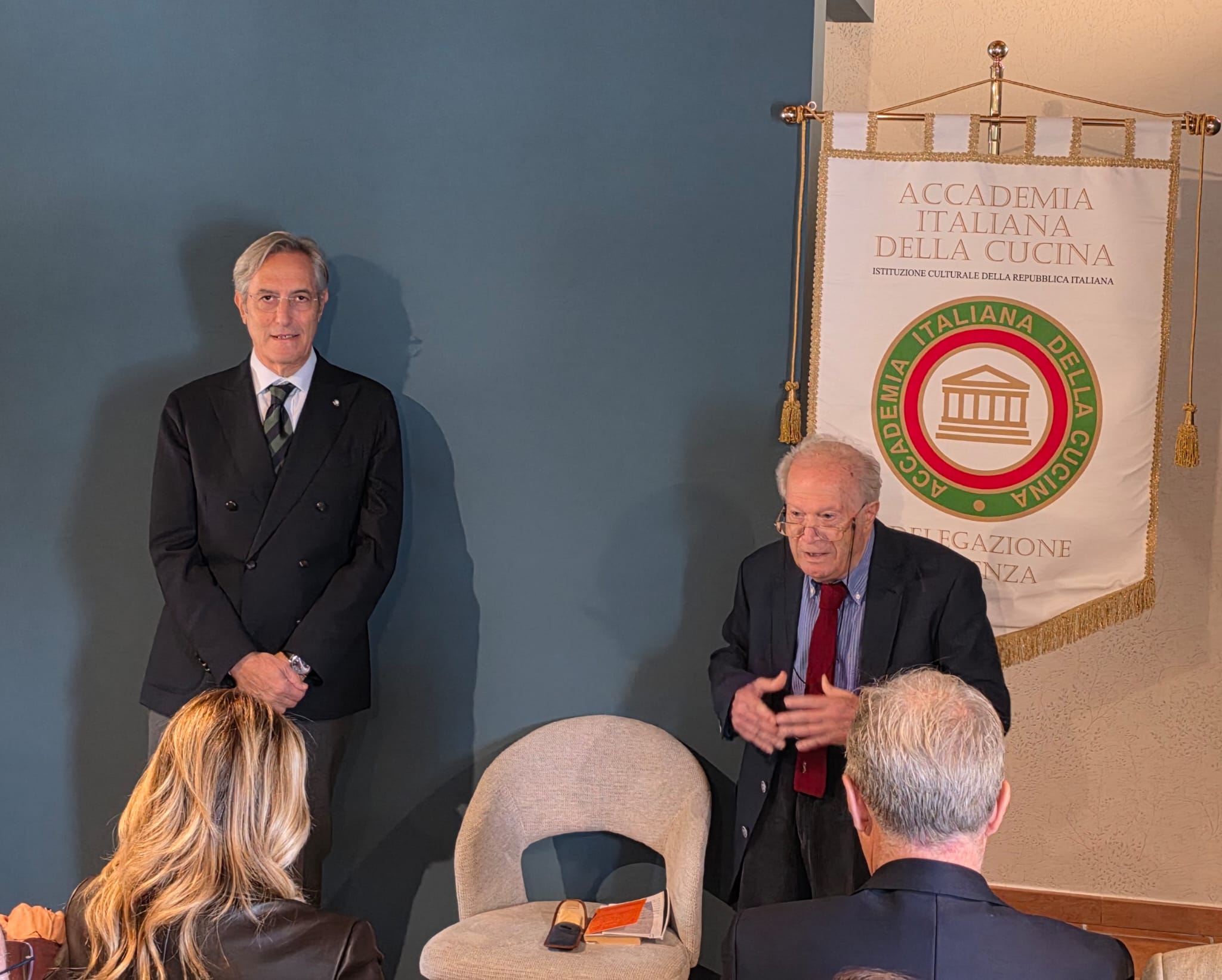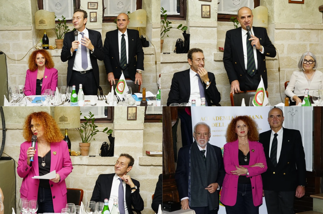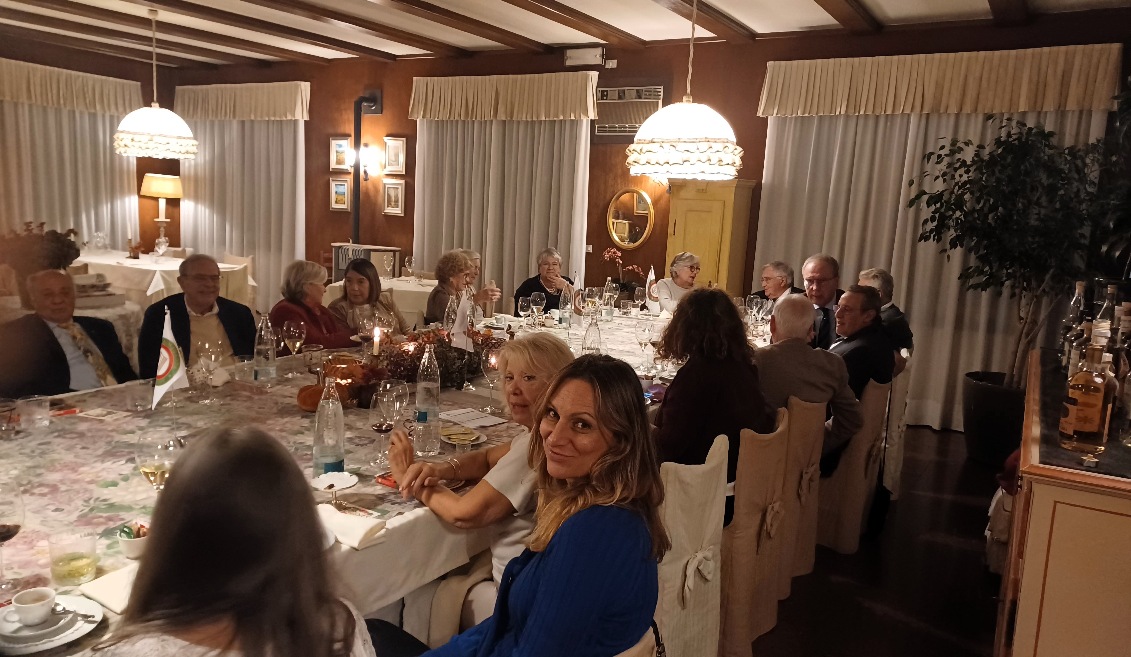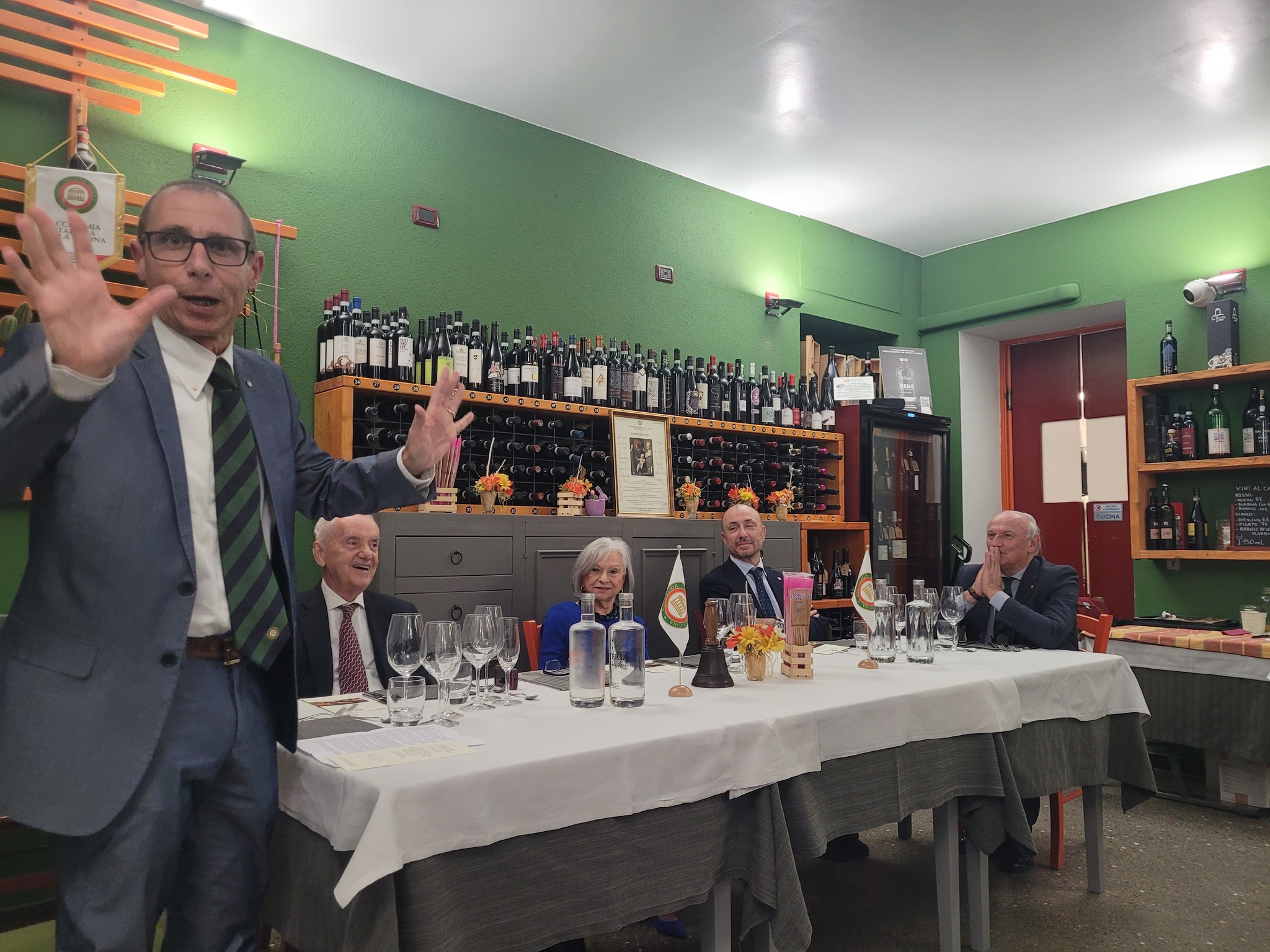 La Cena Ecumenica, magistralmente organizzata dal Simposiarca Ernesto d’Amico presso il ristorante Cantina Battisti di Vago di Lavagno, si è svolta in un clima di grande convivialità e partecipazione. La sua relazione, dedicata al tema dell’anno, è stata condotta con notevole capacità espressiva, coinvolgendo l’intera Delegazione con conoscenza, autorevolezza e simpatia. La serata è stata ulteriormente impreziosita dalla cerimonia di consegna delle insegne accademiche al nuovo Accademico Tony Pagone. Un caloroso e prolungato applauso lo ha accolto, testimoniandogli fin da subito l’affetto e la stima di tutti i presenti. Uno straordinario carrello fumante di bolliti e arrosti, accompagnato dalla amata salsa Pearà, ha coronato una serata davvero gioiosa e gustosissima.