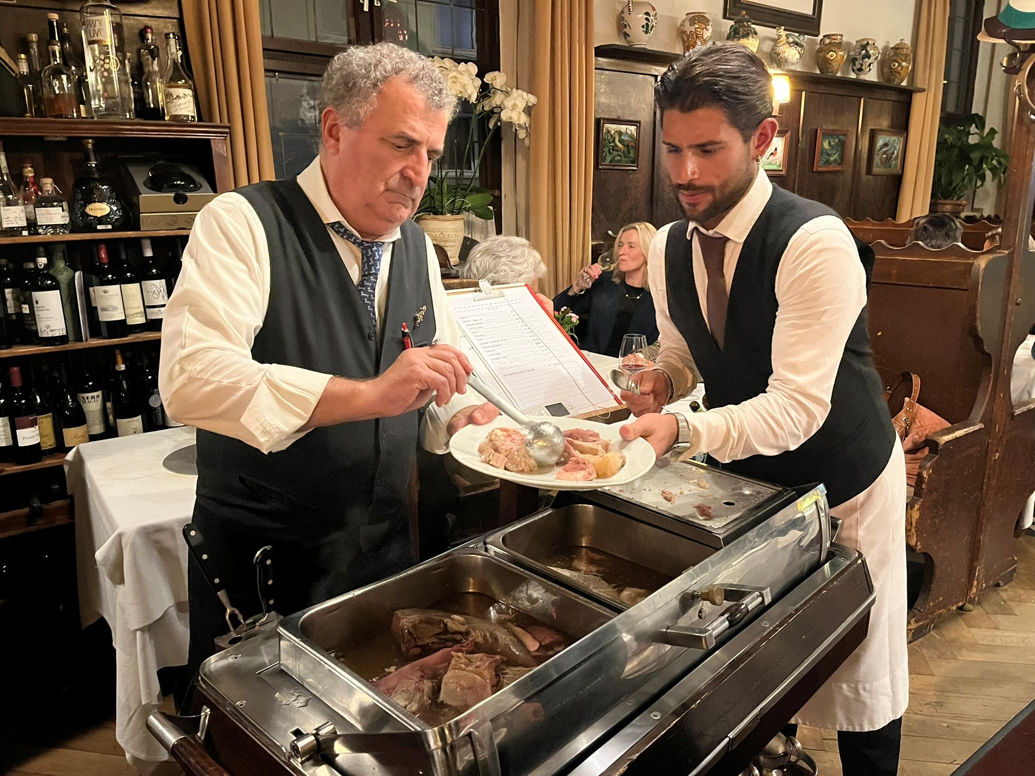 La Cena Ecumenica della Delegazione di Monaco di Baviera si è svolta in un clima di grande convivialità presso l’Osteria Italiana, il più antico ristorante italiano ancora attivo in Germania, fondato nel 1890. Durante la serata sono stati consegnati due riconoscimenti: l’Attestato di Benemerenza a Beppe Cannici, per i quarant’anni di appartenenza all’Accademia, e il Diploma di Appartenenza venticinquennale ad Eva Janda. Entrambi hanno espresso gratitudine verso l’istituzione e gli altri membri, sottolineando il ruolo dell’Accademia nella diffusione della cultura gastronomica italiana. Stephanie Deiters, Simposiarca dell’evento, insieme al gestore Prisco De Stefano e allo chef Umberto Bressanin, ha sviluppato il tema dell’anno proponendo un bollito misto servito al carrello, accompagnato da salse preparate in cucina. Il menù, aperto e concluso da portate dai sapori autunnali e da un primo dedicato alle carni arrosto, ha ottenuto grande apprezzamento, anche per la scenografia del bollito e la preparazione a vista dello zabaione. L’abbinamento dei vini e l’eccellente servizio di sala hanno completato la serata.