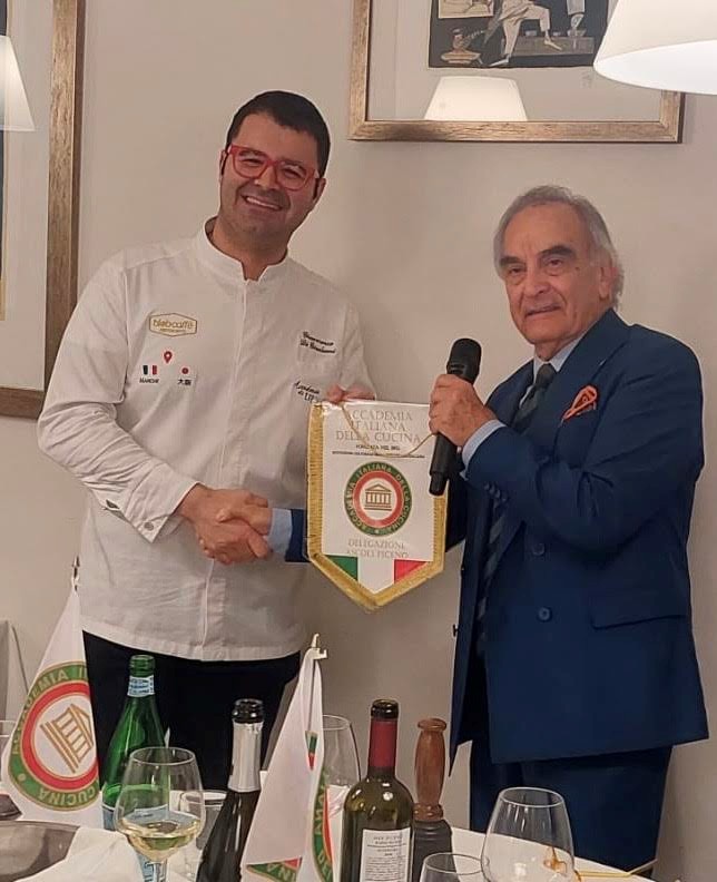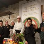 Gli Accademici della Delegazione di Ascoli Piceno hanno organizzato, come ogni anno, la tradizionale Cena Ecumenica presso il ristorante “Blobcaffè” di Offida (AP), dove il giovanissimo ma talentuoso chef Gianmarco Di Girolami ha preparato, insieme all’Accademica Paola Cocci Grifoni, Simposiarca dell’evento, un menu ispirato al tema dell'anno 2025, comune a tutte le Delegazioni, ossia: “La cucina degli arrosti, degli umidi e dei bolliti”, accolto con unanime gradimento dai numerosi partecipanti. Lo chef, infatti, si è mosso a proprio agio nella preparazione della carne di vitello, del coniglio, della lepre e del maiale, e i risultati, sicuramente positivi, non sono mancati: gli Accademici hanno valutato molto favorevolmente pressoché tutte le portate. Molto apprezzati anche i vini delle cantine di Castignano, di Ripatransone e di Castel di Lama, tutte situate nel territorio della provincia di Ascoli Piceno. Il Delegato, in chiusura, ha brevemente tracciato i successi professionali dello chef Gianmarco, informando, tra l’altro, che è stato insignito del titolo di “Ambasciatore della cucina italiana e marchigiana”, esibendosi in Canada, Brasile, Giappone, Perù, Albania e, presto, in Argentina.