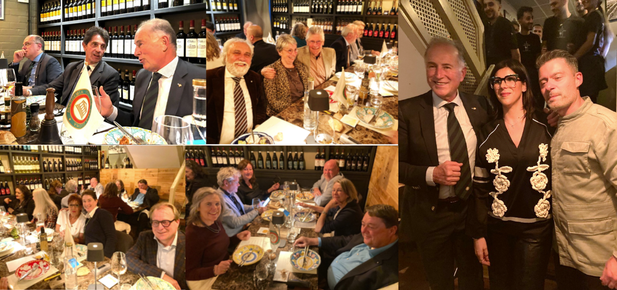 In occasione della Cena Ecumenica, la Delegazione visita il ristorante Retrogusto. Ha l’onore di condividere la tavola con l’Ambasciatore d’Italia nei Paesi Bassi, S.E. Augusto Massari. Lo staff del Retrogusto, guidato dal patron e chef Angelo Sciacchitano, si distingue offrendo una cena indimenticabile, perfettamente in linea con il tema dell’anno e arricchita da un’interessante relazione dell'Accademico Lapo Mughini-Gras. I vini abbinati alle diverse portate si rivelano di assoluta eccellenza. Il percorso gastronomico si apre con un’amuse servita su pane fatto in casa, seguita da una squisita caponata accompagnata da una fettina di porchetta. Prosegue con ravioli al taleggio e porcini, adagiati su un ragù di stracotto di guancia di cinghiale di qualità invidiabile. Eccellente, per cottura e sapore, il bollito misto alla piemontese, pietanza ormai introvabile nei Paesi Bassi. A chiusura, una panna cotta con fragole stufate conclude il menù con delicatezza. Per la costanza, la volontà di migliorarsi e l’utilizzo di ottimi e genuini prodotti italiani, la Delegazione di Utrecht ha deciso di promuovere il ristorante assegnando due tempietti.