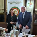 Il tema di quest’anno è stato interpretato dai Simposiarchi della Delegazione di Terni, Federico Carli e Giuseppe Malvetani, con uno sguardo ampio e coraggioso, capace di oltrepassare i confini territoriali per tracciare un percorso che ha attraversato tutto lo Stivale. Il viaggio gastronomico è iniziato con un bollito misto accompagnato da mostarda di Cremona, giardiniera e salsa verde, per poi proseguire con le mezze maniche alla coda alla vaccinara, simbolo del quinto quarto e della cucina popolare, capace di trasformare la necessità in virtù. Il secondo, un piccione ad arrosto morto con broccoletti ripassati, ha riportato il racconto alle radici umbre. Anche il percorso enologico, coerente e narrativo, ha avuto un ruolo centrale, così come l’olio extravergine “Nuovo” dell’Azienda Malvetani, a suggellare il legame con il territorio. Momento di particolare rilievo è stato l’intervento di Giuseppe Fatati, direttore del Centro Studi Territoriale Umbria dell’Accademia, che ha proposto una visione attuale della dieta mediterranea: non uno schema rigido, ma uno stile di vita sostenibile che unisce salute, territorio e comunità. La Cena Ecumenica si è così inserita in un più ampio progetto di valorizzazione della cultura culinaria italiana, arricchito quest’anno dall’ingresso del nuovo Accademico Andrea Carducci e dalla celebrazione dei 40 anni di appartenenza di Giulio Pallotta, esempio di dedizione e passione.