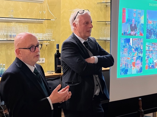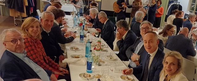 L’evento accademico per celebrare il riconoscimento UNESCO a Monaco di Baviera si è svolto alla presenza di numerosi ospiti istituzionali, tra cui il Console Generale Min. Fausto Panebianco, presente al convivio nel suo primo giorno di incarico. Tra le istituzioni intervenute figuravano l’Istituto Italiano di Cultura, la Camera di Commercio Italo-Tedesca, l’Associazione Dante Alighieri, l’Ente Nazionale del Turismo, l’Unione degli Ufficiali in Congedo, oltre ad associazioni gastronomiche tedesche, fondazioni e giornalisti. Momento centrale della celebrazione è stato l’intervento di Peter Peter, autore, giornalista e critico gastronomico, che ha ripercorso i principali riferimenti storici della cucina italiana, dalle origini antiche fino alle pubblicazioni del Novecento, soffermandosi anche sui valori culturali e conviviali legati alla tradizione della tavola. I Simposiarchi Mattia Dalla Costa e Luca Pelosi hanno presentato il menu, un connubio di portate creative e di elevata maestria in cucina, accompagnate da piatti della tradizione, piemontese in questo caso: gli agnolotti del plin e il brasato al barolo. In chiusura di serata i Simposiarchi hanno invitato ad intervenire il cuoco Mario Gamba, il quale ha reso il ristorante Acquarello un riferimento del più elevato livello della cucina italiana a Monaco, ed ha continuato a mantenere questa posizione durante 35 anni di attività.