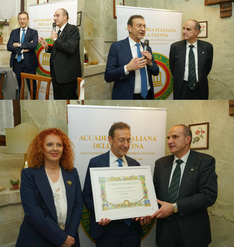 Per celebrare l’Ecumenica Straordinaria di riconoscimento della Cucina Italiana a Patrimonio Immateriale dell’Umanità, è stata scelta Villa Zucchero, una raffinata e accogliente dimora familiare, proprio per coniugare le motivazioni del tributo: saperi culinari, conviviali e sociali trasmessi di generazione in generazione su tutto il territorio nazionale, anche in ambito domestico. Il menu, attraverso ricette tradizionali trasformate dall’interazione affettuosa di diverse generazioni, è stato curato dall’Osteria Il Campanile, ristorante depositario, da oltre 40 anni, della tradizione gastronomica messinese. I piatti proposti da Mimmo Bonaccorso e dallo staff di cucina sono stati: l’antipasto rustico peloritano e il tagliere di formaggi e salumi del territorio; la pasta ‘ncaciata, il ricco timballo al forno siciliano, e le braciolette alla messinese con patate al forno. A completare la proposta, il tradizionale cannolo di ricotta, con l’iconica cialda fritta croccante e friabile farcita con crema di ricotta di pecora, e le zeppole di S. Giuseppe. Soddisfacente la proposta di un Nero d’Avola DOC Sicilia – Cantine Domina Miccina – Sambuca di Sicilia (AG). La riunione è stata aperta dall’intervento del Delegato sul significato del riconoscimento e sui passaggi che ne hanno caratterizzato il lungo iter, e dall’apprezzato videomessaggio del presidente Petroni, a cui ha fatto seguito la visione della clip di “Vai Italia”, l’inno di Mogol e Al Bano. La Consulta ha consegnato riconoscimenti e libri accademici a gestori e ristoratori.
