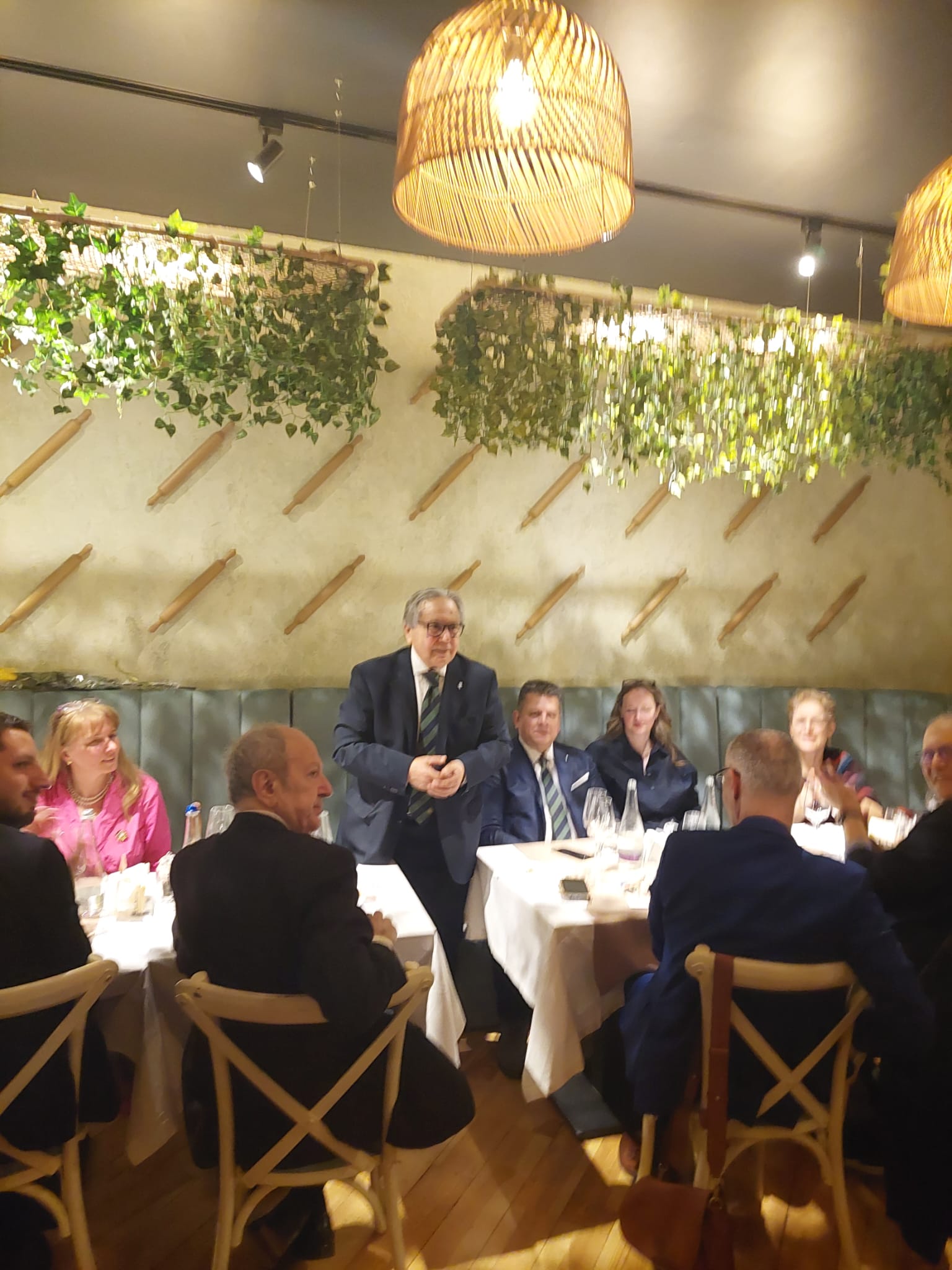 La Delegazione si è riunita presso il Ristorante Theo Randall dell’Hotel Intercontinental per l’Ecumenica Straordinaria dedicata alla cucina italiana quale Patrimonio Culturale Immateriale dell’UNESCO. All’evento hanno partecipato autorevoli rappresentanti delle istituzioni italiane nel Regno Unito: il Console Generale Domenico Bellantone, il Direttore dell’Istituto Italiano di Cultura Francesco Bongarrà, il responsabile dell’Ufficio Economico dell’Ambasciata Umberto Bernardo e il Presidente della Camera di Commercio Roberto Costa. Lo chef Theo Randall, già insignito del Diploma di Buona Cucina e recentemente dell’Onorificenza di Ufficiale della Repubblica O.S.I., ha accolto i partecipanti confermando il suo profondo legame con l’Italia. La sua proposta gastronomica si distingue per un’interpretazione rispettosa della tradizione culinaria italiana e per l’attenzione alla stagionalità degli ingredienti. La serata si è aperta con un aperitivo nella Park Suite dell’Hotel Intercontinental. In tale occasione il Delegato ha introdotto la proiezione del discorso del Presidente Petroni e successivamente è stato attivato un collegamento in diretta con lo stesso, accolto da un caloroso applauso. Il Delegato ha poi illustrato il percorso che ha portato alla decisione dell’UNESCO. Lo chef Randall ha accompagnato personalmente i circa settanta partecipanti al ristorante, dove ha avuto inizio il servizio al tavolo. Al termine della cena ha presentato la brigata di cucina, accolta da un lungo e sentito applauso. La serata si è conclusa in un clima di grande convivialità e allegria, rendendo omaggio alla tradizione gastronomica italiana e ai valori promossi dall’Accademia. Un sentito ringraziamento alla Simposiarca e Vice Delegata Sidney Ross per l’ottima organizzazione.