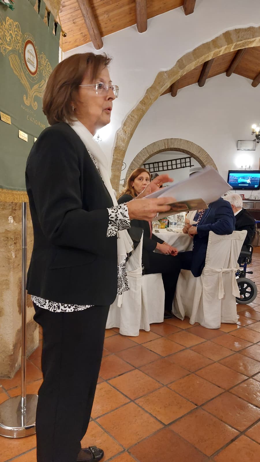 Nel suggestivo scenario dell’azienda agrituristica “Gigliotto Tenute”, nel territorio di San Michele di Ganzaria, la Delegazione di Caltagirone ha celebrato la Cena Ecumenica. Dopo il caloroso intervento online del Delegato Maurizio Pedi, la vice Delegata Colomba Cicirata ha aperto il convivio ricordando la storia delle Tenute Gigliotto: un tempo appartenute ai Gravina e sede dei monaci benedettini che ne bonificarono le terre, sono state acquistate nel 1990 dalla famiglia Savoca, che le ha restaurate trasformandole in un’azienda agricola e vitivinicola con ristorante e resort. La Simposiarca Anna Dabbicco ha poi introdotto il tema della serata, sottolineando l’importanza delle carni, primigenia forma di nutrimento umano, e come il passaggio dalla cottura sulla fiamma alla più elaborata bollitura abbia segnato una svolta nell’evoluzione alimentare. Grande attenzione alla tradizione è stata riservata nella scelta del menù, con pietanze tratte dalle più antiche consuetudini familiari. Tutti i piatti, elencati nel raffinato cartoncino del menù raffigurante in copertina “La Vucciria” di Guttuso, sono stati simpaticamente indicati in siciliano: purpetti ’nte pampini di lumia, zùzzu, quarume, ficatu ‘ri sette cannola…
