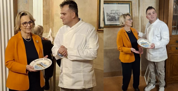 Ad accogliere la Delegazione e gli ospiti Claudia Cremonini, Mario Baraldi (Delegato di Modena) e Pier Paolo Veroni (Coordinatore Territoriale Emilia e Delegato Carpi-Correggio), la suggestiva atmosfera della terrazza del ristorante "Il Castello", dove luci e oscurità giocano ritmi fantastici. Vengono degustati i piatti preparati dallo chef Gabriele Cappi, che uniscono tradizione e contemporaneità, dando forma al concetto di “La cucina italiana, tra sostenibilità e diversità bioculturale”, alla base della candidatura a Patrimonio Immateriale UNESCO. La serata si svolge in un clima di amicizia e condivisione, rafforzando legami e senso di comunità. Claudia Cremonini illustra con competenza le caratteristiche organolettiche dei prodotti presentati. Alla Pasticceria Gollini, che non ha potuto presenziare per impegni di lavoro, viene conferito il Premio Massimo Alberini, dedicato alla generazione femminile che continua la storia familiare iniziata nell’Ottocento con attenzione al territorio e alla qualità. A Claudia Cremonini viene inoltre consegnato il Diploma di Cucina Eccellente per il ristorante Il Castello. Pier Paolo Veroni conclude sottolineando il valore del premio, che si compone di più aspetti valutativi a sostegno l’uno dell’altro, che costruiscono una identità da riconoscere e promuovere.
