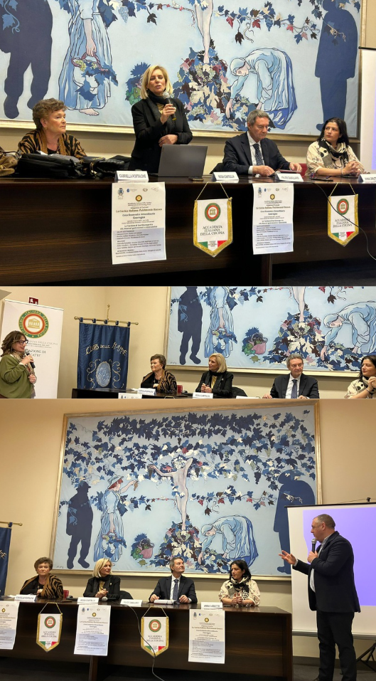 La Delegazione di Chieti ha scelto il borgo medievale di Bucchianico per celebrare il prestigioso riconoscimento della cucina italiana a Patrimonio Immateriale dell’Umanità UNESCO. Alla presenza del prefetto, Silvana D’Agostino, del soprintendente archeologico, paesaggio e belle arti, Chiara Del Pino, e del sindaco, Renzo Di Lizio, si è svolto, all’interno della biblioteca civica, nel complesso dell’ex chiesa medievale di Sant’Antonio, un convegno che ha approfondito il valore della tavola non come mero ricettario, ma come mosaico di tradizioni e linguaggio universale. Dopo il messaggio del Presidente Paolo Petroni, dagli interventi dei relatori — tra cui Cinzia Di Vincenzo, presidente del Club per l’UNESCO di Chieti, e il prof. Pierluigi Ortolano per l’aspetto linguistico — è emerso come l’identità nazionale si fondi su una convivialità domestica da proteggere. Il Vice Presidente Vicario, Mimmo D’Alessio, ha ricordato la responsabilità degli accademici come “sentinelle del gusto” nel tramandare questo patrimonio vivo. La giornata si è conclusa con la riunione conviviale presso il Ristorante “Da Silvio”, dove Gianluca Tucci e la chef Alessia Cicchini, sotto la supervisione del Simposiarca Gerardo Di Cola, hanno reso omaggio al traguardo raggiunto, proponendo un menu della tradizione teatina, espressione autentica di quella cultura e cura dell’altro che l’UNESCO ha oggi ufficialmente consacrato al mondo.