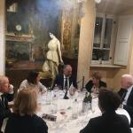 Cena di Gala al Dorchester Hotel organizzata dalla Delegazione per la X SCIM, con la partecipazione di S.E. l’Ambasciatore Italiano a Londra Inigo Lambertini, del Console Generale Domenico Bellantone, del Direttore ICE/ITA Giovanni Sacchi, del Direttore dell’Istituto Italiano di Cultura Francesco Bongarrà, dell’Addetta all’Agricoltura Gabriella Manfredi e del Presidente della Camera di Commercio Roberto Costa. L’Ambasciatore, nel suo saluto, ha elogiato l’attività dell’Accademia in Italia e all’estero, a tutela del patrimonio culturale che la cucina italiana rappresenta. Il Delegato Maurizio Fazzari ha ricordato i 40 anni della Delegazione, i fondatori del 1985 e l’evoluzione della nostra cucina nel Paese; ha festeggiato la Vice Delegata Sidney Ross per i 30 anni di appartenenza all’Accademia, accolti da applausi, e rivolto un ringraziamento speciale al Direttore del Dorchester, Luca Virgilio, per disponibilità e amicizia. Ha quindi dato il benvenuto a Francesco Bongarrà quale Accademico Onorario. Chef d’eccezione Giorgio Locatelli e Francesco Mazzei, insieme alla brigata del Dorchester guidata dal Culinary Director Martyn Nail che ha curato i canape dell’aperitivo. Locatelli e Mazzei hanno intrattenuto i presenti con simpatia e proposto piatti molto apprezzati: ravioli con patate e caviale (Locatelli) e la celebre Porchetta del Re (Mazzei), preparata per una cena con Re Carlo. La brigata del Dorchester è poi entrata con carrelli di tiramisù servito al cucchiaio. Grandi applausi e straordinaria convivialità. Il Delegato ha consegnato al Dorchester il piatto ricordo e ringraziato la Simposiarca Sidney Ross per l’impeccabile organizzazione.