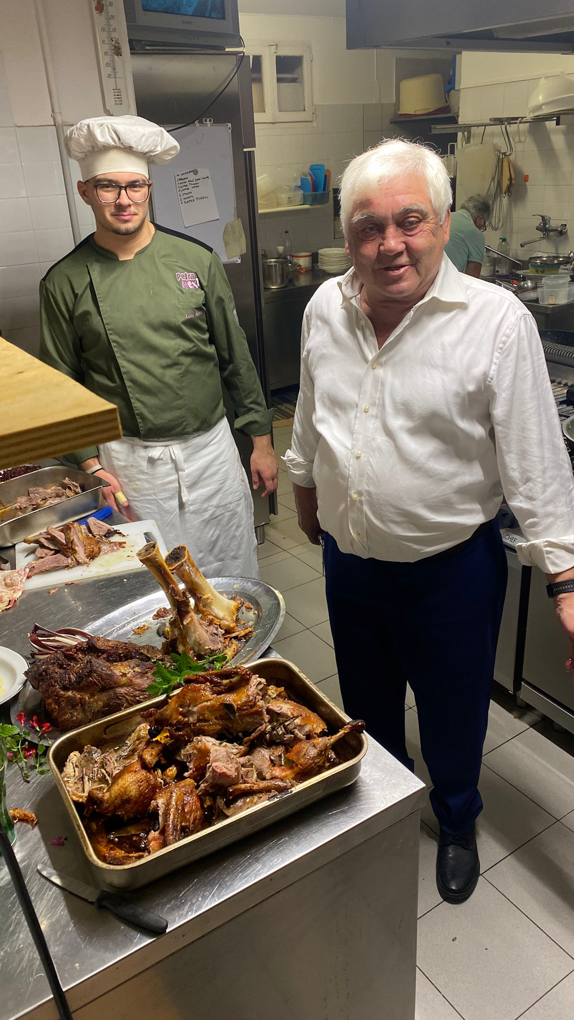 L’arrosto è stato l’assoluto protagonista della riunione conviviale organizzata dalla Delegazione Colli Euganei-Basso Padovano al Ristorantino Venier di Baone, in ideale prosecuzione del tema dell’anno "Arrosti, bolliti e umidi nella cucina regionale italiana". Proprio nel corso della cena ecumenica dello scorso 16 ottobre era nata l’idea di dare ulteriore seguito a un tema così amato con un menu tutto dedicato agli arrosti. Toni Raffagnato, patron del Venier coadiuvato dalla moglie Antonella e dalla figlia Valentina, ha portato in tavola tre specialità: lo stinco di vitello insaporito con grani di melograno, l’ossocollo al pepe, specialità della bassa padovana, e una delle sue anatre allevate nel cortile di casa. Elemento comune la lunga cottura sul forno della stufa a legna, procedimento che deve cominciare la sera dopo cena per concludersi la mattina seguente. Hanno completato la proposta le tagliatelle fatte in casa con la farina del vicino molino Colli Euganei della famiglia Zambon, che ha fornito anche la farina della polenta in accompagnamento al salame grigliato, il risotto con i funghi dell’Altopiano di Asiago e il paté con i fegatini degli animali di bassa corte. Per accompagnare e valorizzare i piatti sono stati selezionati i più prestigiosi e premiati vini dei Colli Euganei, doc affermata tra le migliori per i rossi di taglio bordolese. Una cucina squisitamente tradizionale, autentica e appetitosa, così come schietta e informale è stata l’atmosfera della serata, conclusa con le immancabili caldarroste di stagione cotte nel forno a legna.