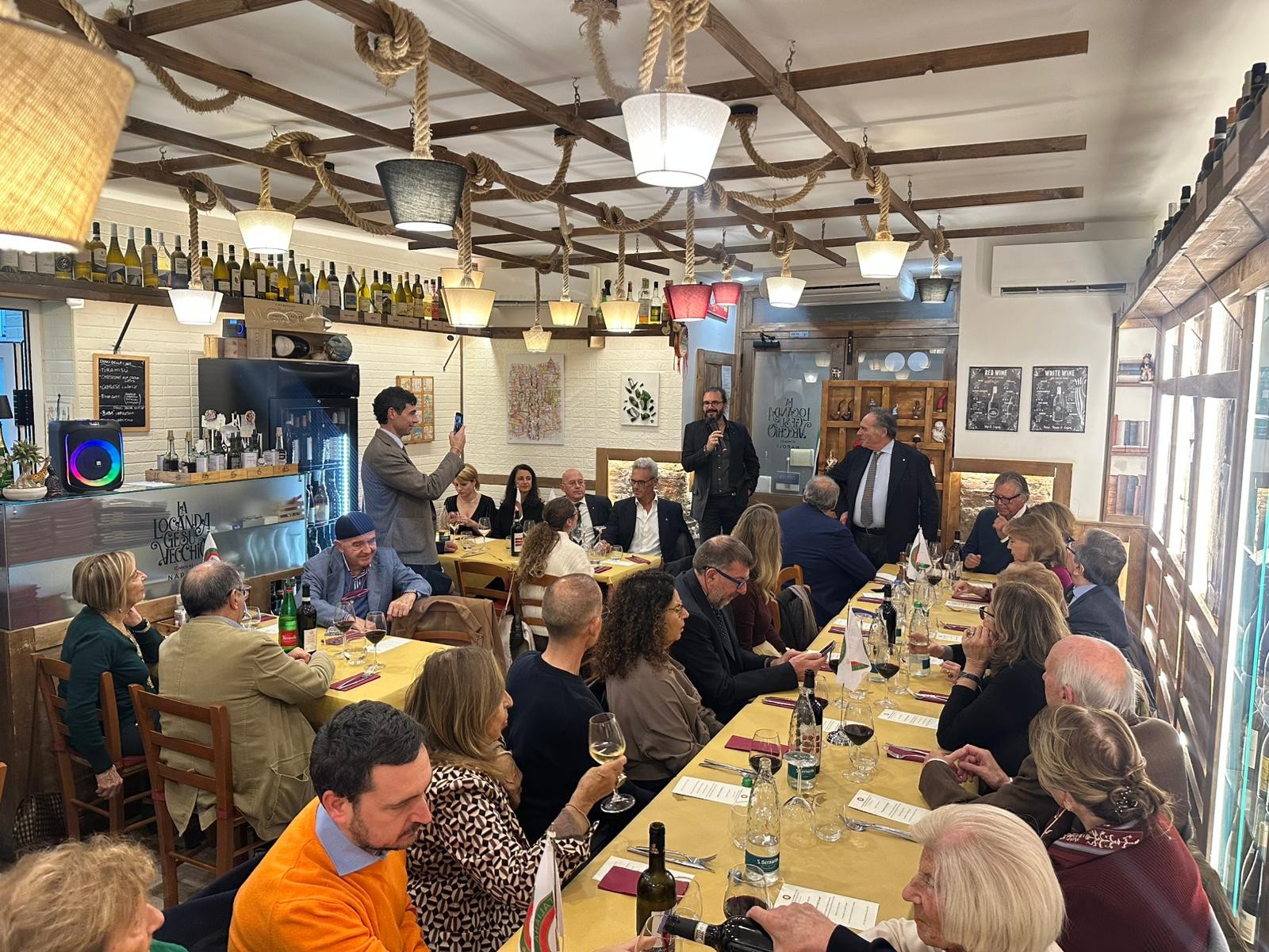 Riunione celebrativa per la Delegazione Napoli che ha dedicato la conviviale di novembre alla Giornata del Ragù Napoletano. Istituita dalla Regione Campania grazie al prezioso contributo del Direttore del Centro Studi Territoriale Campania Massimo Franco, la Giornata del Ragù Napoletano ricorre la seconda domenica di novembre per valorizzare il Ragù quale simbolo dell'identità culturale e familiare regionale. La preparazione del Ragù è stata affidata alla “Locanda Gesù Vecchio", quotatissima osteria del centro storico di Napoli. In un quartiere rivolto unicamente ai gusti del turismo, la Locanda ha il coraggio di proporre e imporre ricette della tradizione e sapori autentici per lo più dimenticati dalla ristorazione ma vivi nelle case. Coraggio certamente ripagato a giudicare dal grande numero di visitatori a dispetto delle sue modeste dimensioni e di un approccio generalmente rilassato. Presente alla serata, il romanziere e studioso di esoterismo Martin Rua. Con una conversazione sulla “Alchimia della cucina: un itinerario tra i misteri, il Ragù e la gastronomia napoletana”, Martin Rua ha evidenziato le affinità tra l’arte culinaria e quella esoterica presentandoci un Ragù - vera e propria preparazione alchemica - che ripercorre fedelmente le tre fasi di trasformazione della materia fino a sublimare nel godurioso sugo rosso di cui tutti credevamo di conoscere il mistero. Da segnalare, infine, l’ingresso nella Delegazione di Deli Maglione.