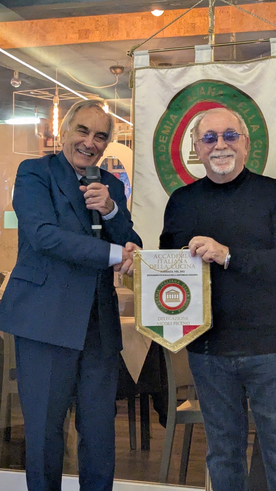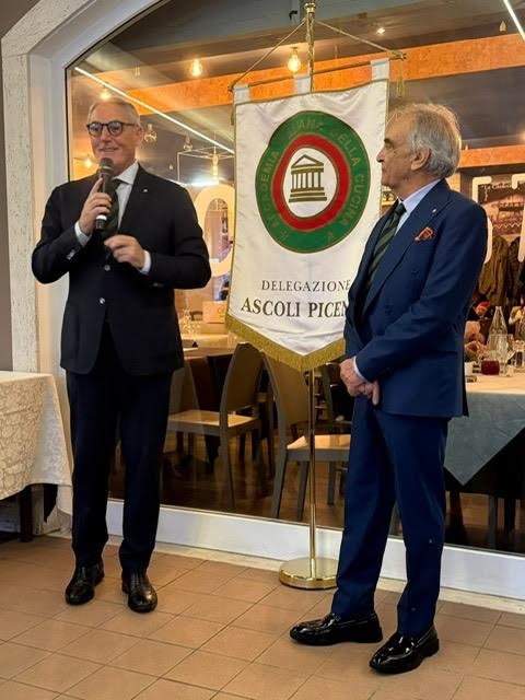 La Delegazione di Ascoli Piceno ha organizzato la “Conviviale d’autunno” dedicata alla degustazione dei frutti di stagione come tartufo bianco e nero pregiato, funghi, castagne e altro, affidando la cucina allo chef Sergio Del Grande. Storico cuoco del ristorante di montagna “La Casaccia” di Acquasanta Terme, ora non più attivo, oggi guida l’“Angolo 57” di San Benedetto del Tronto. Per l’occasione ha rispolverato antiche ricette della tradizione acquasantana, perfettamente in linea con la missione dell’Accademia, impegnata a valorizzare le tradizioni della cucina italiana. L’esperimento è riuscito pienamente: gli Accademici hanno assegnato voti altissimi a tutte le portate nella scheda di valutazione. Tra i piatti più apprezzati spiccano gli antipasti “Carpaccio di scottona con insalata di porcini, pecorino e nocciole di Acquasanta” e “Uovo pochè su spuma di parmigiano e tartufo bianco”. Ottimi anche il “Risotto carbo al tartufo nero pregiato”, rivisitazione del classico risotto alla carbonara, e lo “Stinco di vitello su pera di tuberi al tartufo nero”. Alla serata sono intervenuti il Coordinatore territoriale Marche dell’Accademia, Sandro Marani, e l’Assessore alla Pubblica Istruzione di Ascoli Piceno, Prof.ssa Donatella Ferretti, insieme a numerosi ospiti che hanno espresso grande apprezzamento per il menu e per l’atmosfera conviviale dell’evento.