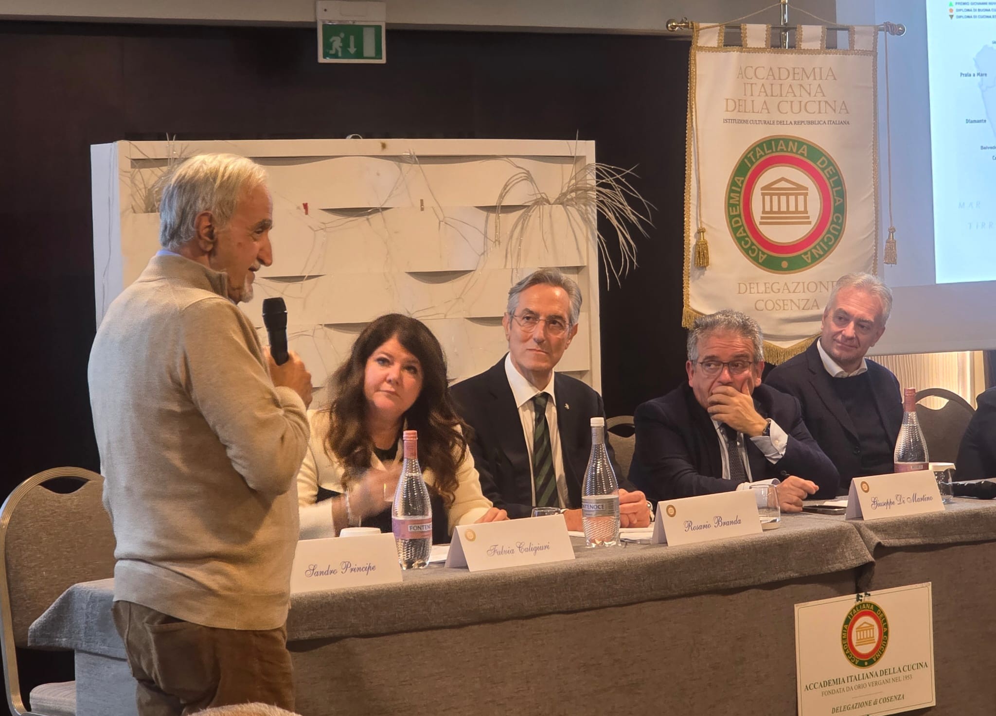 Si è tenuto al “Villa Fabiano Palace Hotel” di Rende l'evento organizzato dalla Delegazione cosentina sul tema “La cucina di territorio tra sostenibilità e diversità bioculturali”, inserito nell'ambito della X Settimana della Cucina Italiana nel Mondo, con l'obiettivo di valorizzare la cucina italiana e promuovere qualità, inclusione e collaborazione che rappresentano un pilastro importante per le produzioni del Paese. Il Delegato di Cosenza Rosario Branda ha evidenziato che la cucina di territorio coniuga tradizione e innovazione, unendo biodiversità agricola, tradizioni locali e nuove idee, e che difendere questa diversità favorisce sviluppo sostenibile, occupazione e identità condivisa. Particolarmente coinvolgente è stato il momento della consegna dei premi 2025: il premio Massimo Alberini è stato assegnato all’esercizio commerciale Fratelli Nocerino, ritirato da Antonio Nocerino alla presenza del Sindaco della città di Cosenza Franz Caruso; il premio Dino Villani è andato a Rosa Iaquinta del Panificio Parmella per la “Pitta ‘Mpigliata”, presentata da Florindo Rubbettino, presidente della rete dei musei d’impresa della Calabria Sudheritage; il “Diploma di Buona Cucina” è stato conferito al ristorante L’Oste d’Arberia allo chef Gregorio Antonio Buccolieri dal Direttore Generale ARSAC Fulvia Caligiuri; infine, il premio Giovanni Nuvoletti è stato consegnato al giornalista Gianfranco Manfredi dal Direttore del Centro Studi Territoriale Calabria Ottavio Cavalcanti, affiancato dai Delegati di Cosenza Rosario Branda, di Vibo Valentia Eleonora Cannatelli e di Reggio Calabria Giuseppe Alvaro.