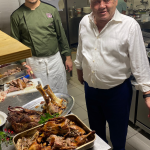 Milos Pesole del ristorante Quattro Gatti di Amsterdam ha interpretato benissimo il tema della serata, proponendo un menu di stampo piemontese/toscano con ricette classiche eseguite con maestría. Particolarmente apprezzati gli antipasti, in particolare la lingua morbidissima, e gli agnolotti del plin al sugo d’arrosto. Ha destato curiosità ed interesse la ricetta del cinghiale dolce e forte per il suo sapore speziato, tipico delle ricette rinascimentali. Il bunet finale accompagnato dal bicerin torinese sono stati acclamati. Buoni i vini in accompagnamento e lodevole il servizio. Durante la serata il Delegato (in foto), prendendo spunto dalla presentazione al recente forum dei Delegati, ha parlato di Intelligenza Artificiale in cucina, suscitando una discussione vivace ed interessante.
