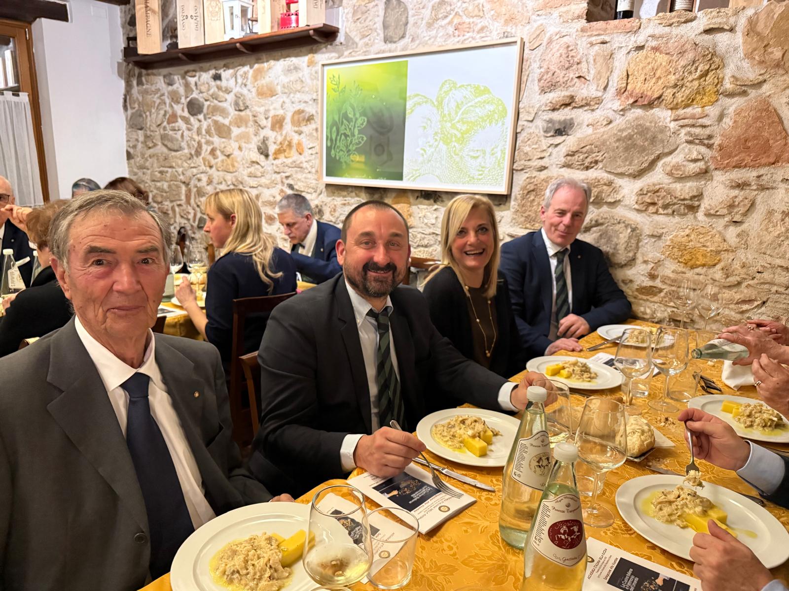 Per festeggiare il riconoscimento UNESCO della Cucina Italiana a Patrimonio Immateriale della Umanità, la Delegazione perugina si è riunita presso il ristorante Deco di Perugia-Ponte San Giovanni. L’ evento, curato dalla Simposiarca Laura Bruni Fiumicelli, ha rappresentato l’occasione per celebrare attraverso il piatto prescelto – il “torello alla perugina” – l’identità gastronomica del territorio, come ha sottolineato il Delegato Massimo Moscatelli. Al cospetto delle autorità cittadine – la sindaca Vittoria Ferdinandi, l’assessore comunale all’Ambiente e Politiche del Cibo David Grohmann e il presidente della Camera di Commercio dell’Umbria Giorgio Mencaroni – e dei numerosi ospiti, Marilena Moretti Badolato, membro del C.S.T. Umbria, ha ripercorso la storia di un piatto che, molto in voga negli anni ‘60 e ‘70 del Novecento, è oggi tornato di nuovo nei menu di alcuni ristoranti e che vede, nella sua lunga storia, radici autoctone e contaminazioni importanti. Nel corso della serata si sono ricordati i due depositi culturali effettuati nel 2024 e 2025 dalla Delegazione perugina, prima in Umbria, alla Camera di Commercio: le ricette della Ciaramicola e quella del Torcolo di San Costanzo. Si è inoltre palesata la disponibilità a collaborare con il Comune per istituire, per queste ricette storiche perugine, il Registro De.Co. (Denominazione Comunale), attestazione di legame territoriale e di tipicità.