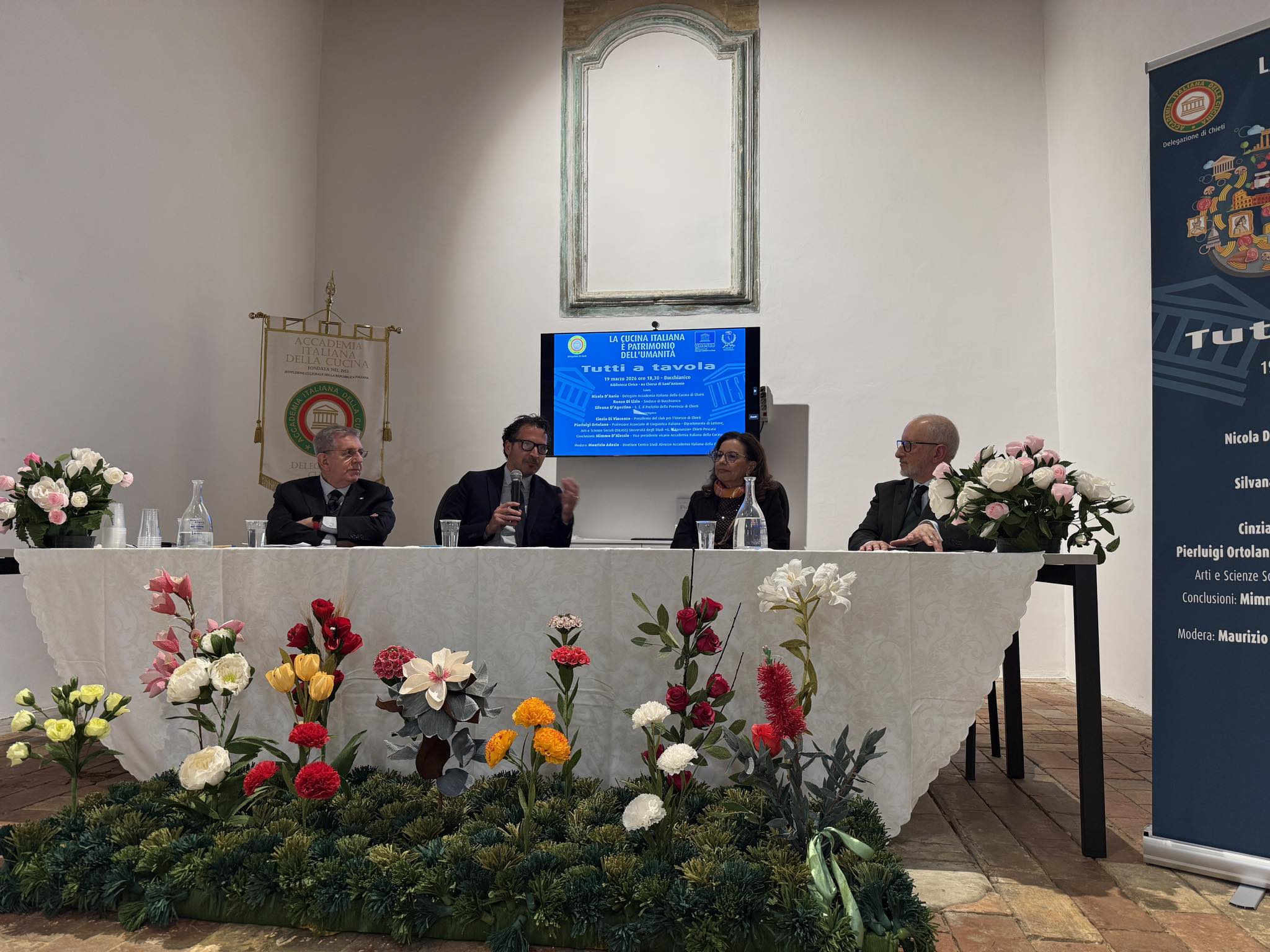 Si è tenuto nel Salone di Rappresentanza del Municipio di Caltagirone il partecipato convegno sul riconoscimento della cucina italiana a patrimonio dell’umanità. Dopo i saluti istituzionali delle autorità politico-amministrative e accademiche, il moderatore, Delegato Pedi, ha dato la parola ai relatori: il dott. Patanè (Direttore del sito UNESCO) ha tracciato il valore immateriale del riconoscimento e, nello specifico per il territorio, il rapporto sinergico con i numerosi patrimoni materiali già riconosciuti come tali; il sociologo prof. Nicosia (Università di Catania) ha evidenziato i nessi tra cibo, cultura e società, partendo dal presupposto che il cibo e la nutrizione non siano un fatto meramente biologico, bensì un elaborato culturale, con un consumo inserito in pratiche sociali codificate e rituali. L’antropologo prof. Perricone di Palermo, attraverso uno strategico percorso, ha condotto i presenti verso interessanti conclusioni. Una di queste auspica di non aderire, nel prossimo futuro, acriticamente alle lusinghe del turismo di massa, che snatura i luoghi, non li arricchisce economicamente e non valorizza le tradizioni custodite. In linea con questa visione, la dott.ssa Sabella (Segretario Generale della Camera di Commercio di Messina) ha posto l’accento sul turismo esperienziale come opportunità di sviluppo. A seguire, si è svolta una cena presso il ristorante Villa D’Andrea, dedicata ad antichi piatti della tradizione, ispirati sia alle ricette dei Monsù — cuochi al servizio dei nobili feudatari nei palazzi cittadini — sia alla cucina contadina, tramandata oralmente nel tempo.