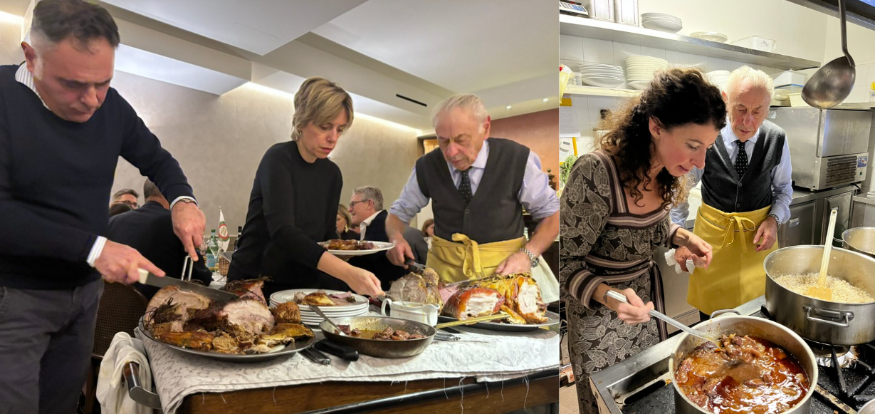Gli Accademici della Delegazione di Londra e alcuni ospiti, tra cui il Console Generale Domenico Bellantone e consorte, si sono riuniti nei locali della Cantinetta Antinori, ristorante dell’omonima nobile famiglia, per celebrare la Conviviale Ecumenica 2025. Dopo un ricco aperitivo con prodotti tipici toscani, il Delegato ha presentato il volume redatto quest’anno dall’Accademia Italiana della Cucina "Gli Arrosti, Gli Umidi, I Bolliti" illustrando alcune ricette tipiche regionali e la loro evoluzione nel tempo. È stato quindi servito un menu di grande tradizione piemontese e toscana: salumi e formaggi della zona, crostini con pomodorini e basilico; a seguire agnolotti del plin con sugo d’arrosto e arrosto di fesa di manzo, in armonia con il tema della Conviviale, accompagnati da contorni di patate novelle e broccoletti con peperoncino dolce. Entrambi i piatti hanno suscitato commenti entusiasti, così come i cantucci fatti in casa con vin santo. Ottima la selezione dei vini della Cantina Antinori, serviti durante l’aperitivo e la cena. La serata, all’insegna della convivialità e dell’allegria, si è conclusa con un caloroso applauso allo chef Luigi Borelli, al quale il Delegato ha consegnato il piatto ricordo dell’Accademia, e a tutto il personale, nonché alle Simposiarche Silvia Mazzola e Jacqueline McKay per l’impeccabile organizzazione della Cena Ecumenica 2025.
