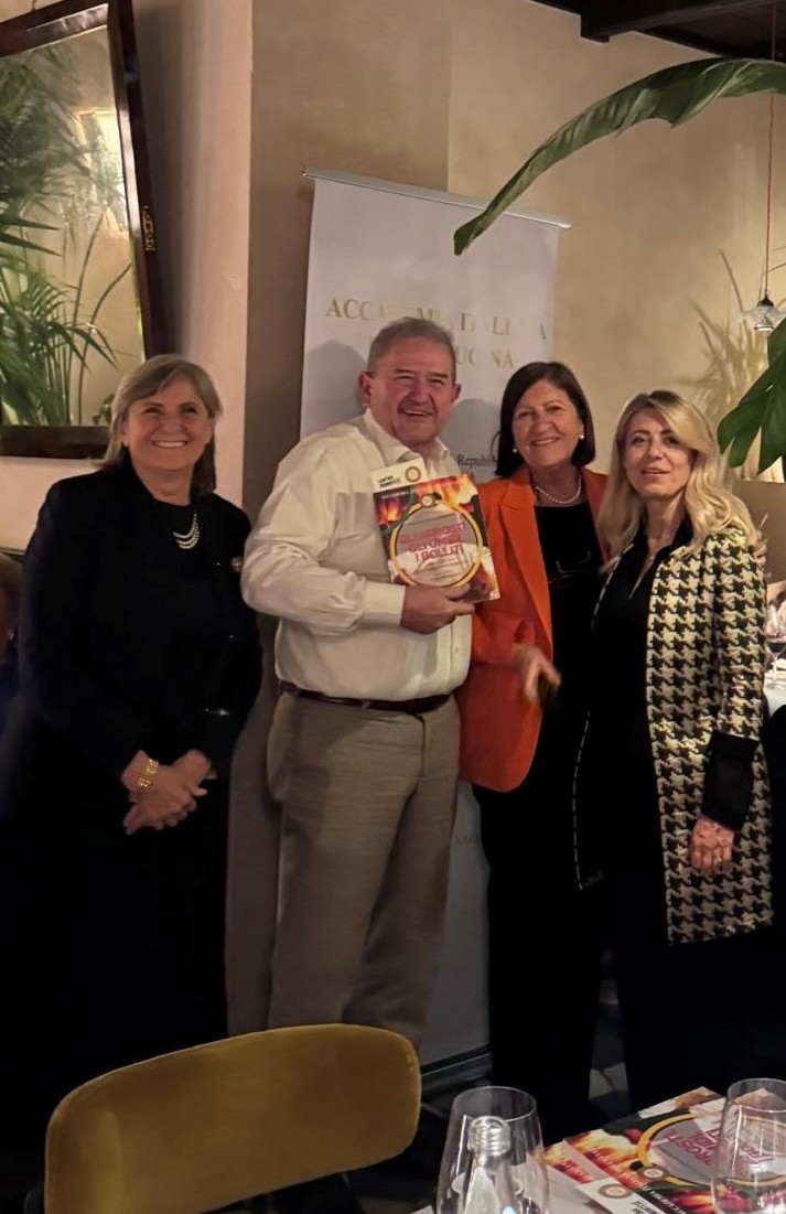 Il tema di quest’anno è stato interpretato dai Simposiarchi della Delegazione di Terni, Federico Carli e Giuseppe Malvetani, con uno sguardo ampio e coraggioso, capace di oltrepassare i confini territoriali per tracciare un percorso che ha attraversato tutto lo Stivale. Il viaggio gastronomico è iniziato con un bollito misto accompagnato da mostarda di Cremona, giardiniera e salsa verde, per poi proseguire con le mezze maniche alla coda alla vaccinara, simbolo del quinto quarto e della cucina popolare, capace di trasformare la necessità in virtù. Il secondo, un piccione ad arrosto morto con broccoletti ripassati, ha riportato il racconto alle radici umbre. Anche il percorso enologico, coerente e narrativo, ha avuto un ruolo centrale, così come l’olio extravergine “Nuovo” dell’Azienda Malvetani, a suggellare il legame con il territorio. Momento di particolare rilievo è stato l’intervento di Giuseppe Fatati, direttore del Centro Studi Territoriale Umbria dell’Accademia, che ha proposto una visione attuale della dieta mediterranea: non uno schema rigido, ma uno stile di vita sostenibile che unisce salute, territorio e comunità. La Cena Ecumenica si è così inserita in un più ampio progetto di valorizzazione della cultura culinaria italiana, arricchito quest’anno dall’ingresso del nuovo Accademico Andrea Carducci e dalla celebrazione dei 40 anni di appartenenza di Giulio Pallotta, esempio di dedizione e passione.