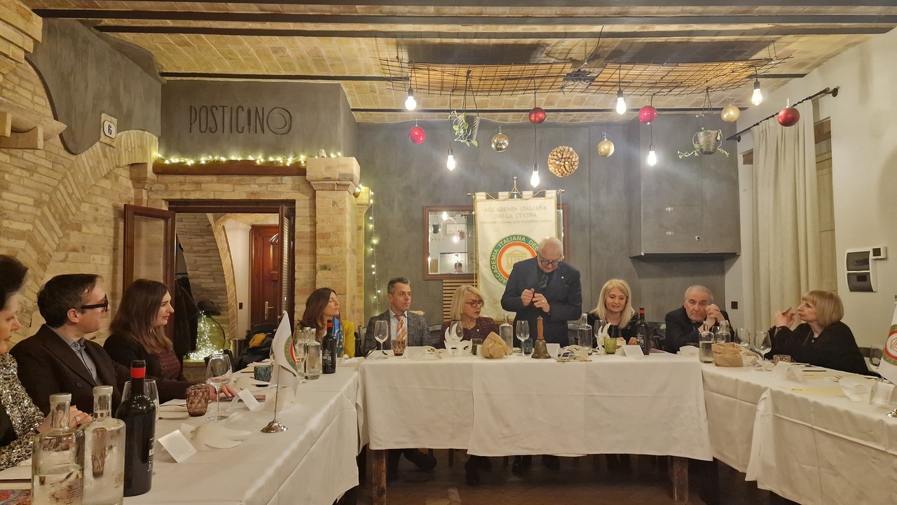 La Delegazione vastese si è riunita al ristorante Il Posticino di Vasto per celebrare la Conviviale regionale sul tema “Le tradizioni del Carnevale in Abruzzo”, condivisa in contemporanea con le nove Delegazioni abruzzesi per unire convivialità, ricerca storica e valorizzazione del patrimonio locale. Ogni Delegazione ha proposto un menu ispirato ai piatti tipici della festa, storicamente legata a riti di abbondanza prima del rigore quaresimale. Simposiarca della serata Anna Roselli, che ha illustrato il menu in continuità con la relazione introduttiva di Antonella Marrollo su “Le tradizioni del Carnevale nel territorio vastese”. Nel suo intervento, Marrollo ha evidenziato che il Carnevale vastese non è un insieme di ricette ma un sistema culturale legato a stagioni, comunità, attesa e rinuncia; ricordare queste pietanze significa riconoscerle come parte dell’identità e del patrimonio gastronomico. Nel Vastese si mangiava di più per rito, non per gola, e riproporre oggi quei piatti vuol dire conservarne la memoria e il valore culturale. Il Delegato Adri Cesaroni ha sottolineato che celebrare il Carnevale è un omaggio alle radici agrarie e sociali del territorio e che custodire queste tradizioni consente di mantenere vivo il legame con la storia, evitando che vadano perdute.