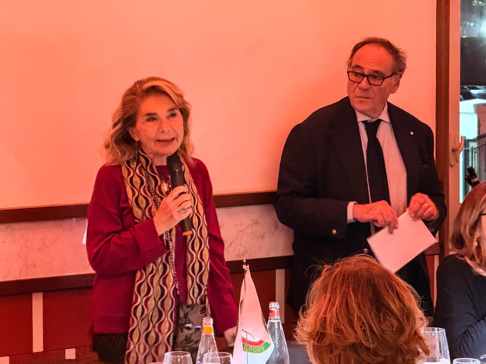 La Conviviale degli Auguri è stata celebrata alla Vittoria House of Charme, villa realizzata negli anni Venti del ‘900 dall’architetto Guido Viola per la famiglia De Natale e poi rilevata dai Rodriquez, fondatori dei famosi cantieri navali. Nel corso della serata è stato consegnato l’attestato per l'ingresso della nuova Accademica Antonella De Domenico. Il menu, curato dagli Ambasciatori del Gusto, il maestro panificatore Francesco Arena, gli executive chef Pasquale Caliri e Tonino Puglisi e il maestro pasticcere Lillo Freni, ha proposto: cestino di pane con mousse di patate e speck croccante; risotto ai funghi, castagne, noci, gastrique di vino rosso e cacao; pancia di maialino marinata alla birra in dolce cottura su cialda di polenta e spinacino; dolci natalizi, tra cui panettone «diplomatico», piparelli e nzuddi, quest’ultimi due inseriti nell’elenco dei Prodotti Agroalimentari Tradizionali (PAT). Apprezzata la cantina con Martinotti Cuvée Prestige Extra Dry e Etna Rosso Doc della Tenuta Ferrara Punta Drago. Per le festività la Consulta ha destinato una donazione alimentare alla mensa dei poveri della Basilica di Sant’Antonio. La serata si è conclusa con il tradizionale sorteggio dei gadget natalizi.