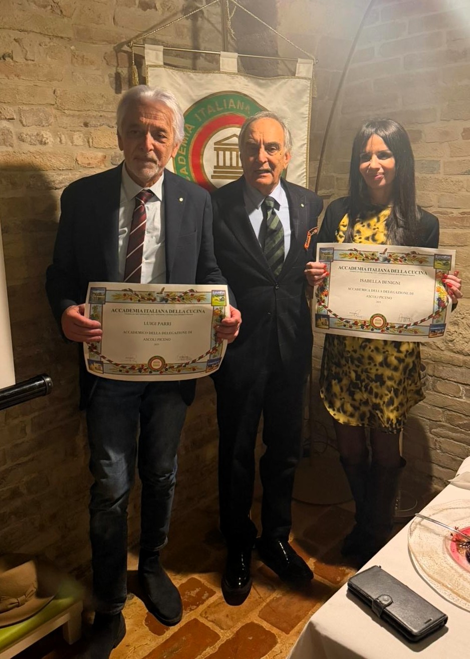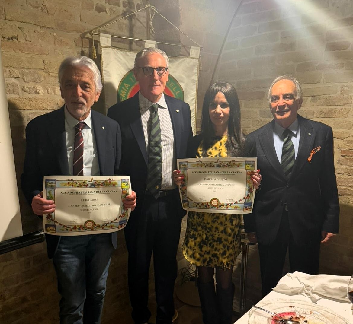 La Delegazione di Ascoli Piceno ha organizzato, per la prima volta, una riunione conviviale riservata ai soli Accademici, senza accompagnatori né ospiti, presso il ristorante “Villa dei Priori Messer Chichibio” di Monsampolo del Tronto. Lo scopo, oltre a quello di rafforzare lo spirito di corpo tra gli Accademici e di favorire l’integrazione tra i vecchi e i nuovi associati, è stato soprattutto quello di rileggere insieme le norme scritte (quali lo Statuto, il Regolamento e il Codice Etico) e quelle non scritte che riguardano l’Accademia, le sue manifestazioni e gli Accademici stessi. L’incontro è stato molto gradito e apprezzato, anche perché il compendio e la sintesi sono stati elaborati dal Coordinatore Territoriale Marche, Sandro Marani. Il menù, coordinato dal Delegato Vittorio Ricci con lo chef Piero Crescenzi, è stato da quest’ultimo preparato magistralmente, ottenendo un’ottima valutazione finale. Molto apprezzati gli antipasti, il “capocollo laccato al miele” come secondo e il dessert, un “cuore tenero di cioccolato”, semplicemente superbo.