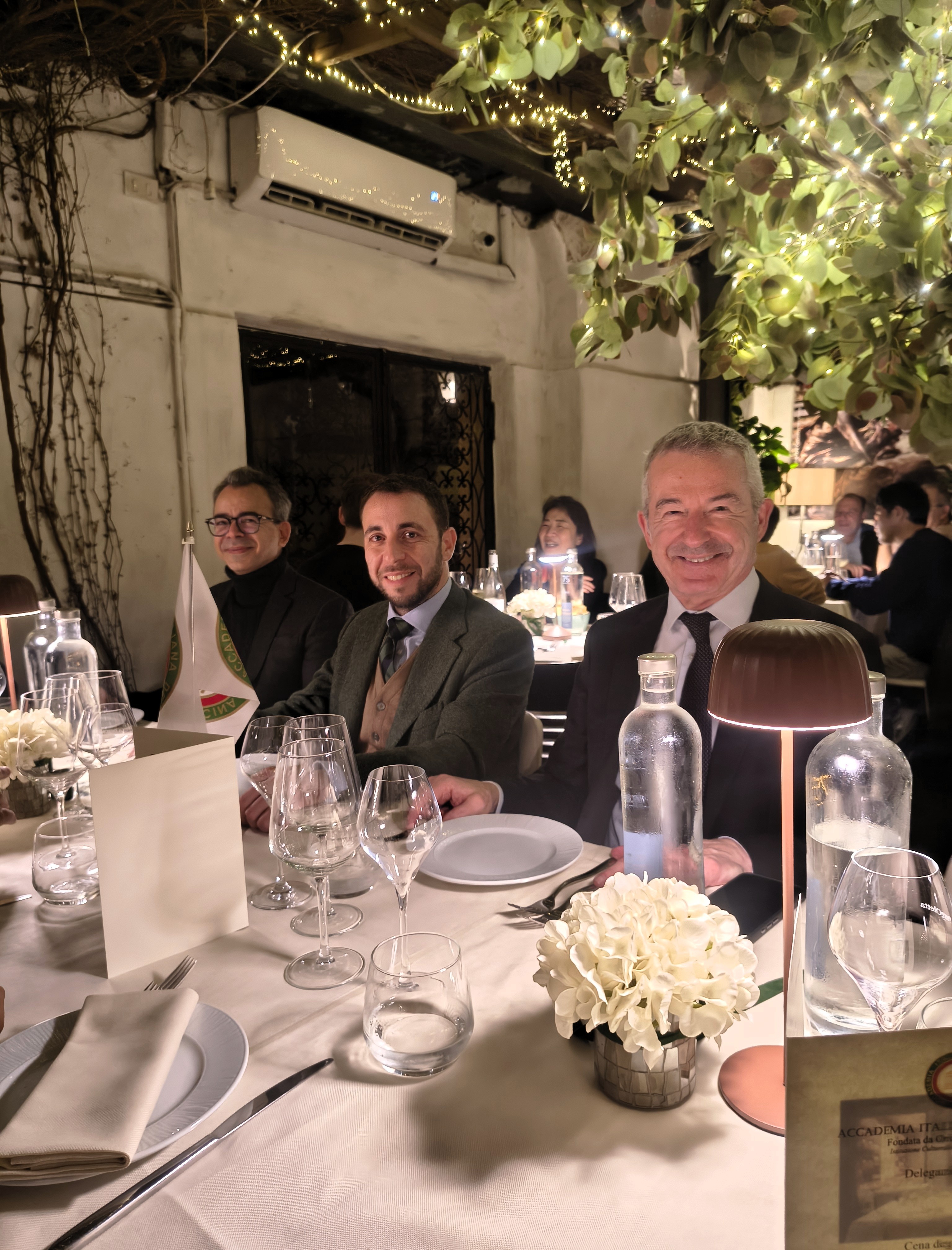 La Delegazione di Verona, presieduta dal Delegato Fabrizio Farinati, ha celebrato il Natale tra le splendide vallate della Valpolicella, arricchendo l’incontro con i festeggiamenti per il riconoscimento della Cucina Italiana come Patrimonio Immateriale dell’Umanità. La serata si è svolta presso Casale Spighetta a Torbe, Negrar della Valpolicella, un ambiente elegante ma al contempo semplice, che richiama con arredi e materiali gli elementi naturali: terra, aria, acqua e fuoco. L’ospitalità e la professionalità dello chef patron Angelo Zantedeschi e di sua sorella Elisabetta hanno completato l’atmosfera. Il menu, espressione dell’amore per la terra e per il mare, valorizza materie prime stagionali e sostenibili. Il camino acceso e i tavoli elegantemente apparecchiati hanno reso la cena ancora più suggestiva. Durante il convivio si sono discussi temi legati alle prossime attività della Delegazione, tra cui la Cena Ecumenica e il Convegno sul tema Brillat-Savarin, che si terrà presso la Società Letteraria di Verona. Tra gli intervenuti: Morello Pecchioli, Emanuele Battaglia, Ernesto D’Amico, Antonio Ferrieri e Pietro Canepari. Graditissimi ospiti sono stati il Notaio Silvia Brognara e il Dott. Alberto Brognara. Il Delegato ha consegnato allo chef il prestigioso piatto in silver dell’Accademia, a testimonianza dell’elevato livello qualitativo del ristorante. Un brindisi finale ha unito emotivamente tutti i presenti.