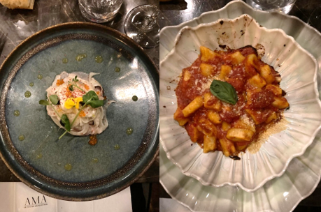 La Delegazione Utrecht visita per la seconda volta il ristorante AMA, che propone specialità partenopee sotto la guida del patron David d’Aguanno e dello chef Angelo Colombo. La serata si apre con un cocktail Caruso, che accompagna un ottimo bocconcino di baccalà fritto eseguito con grande maestria. Il delicato carpaccio di pesce spada con insalata di finocchio e agrumi viene particolarmente apprezzato, così come i morbidissimi gnocchi gratinati alla Sorrentina. La guancia di manzo brasata risulta cotta a meraviglia e riceve numerosi riscontri positivi; altrettanto vale per la crostata fatta in casa, a forma di cuore, realizzata in onore della festa di San Valentino. Considerati i risultati molto positivi di entrambe le visite, il Delegato e la Consulta decidono di inserire il ristorante AMA nella lista dei ristoranti AIC, premiandolo con 1 Tempietto.