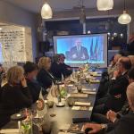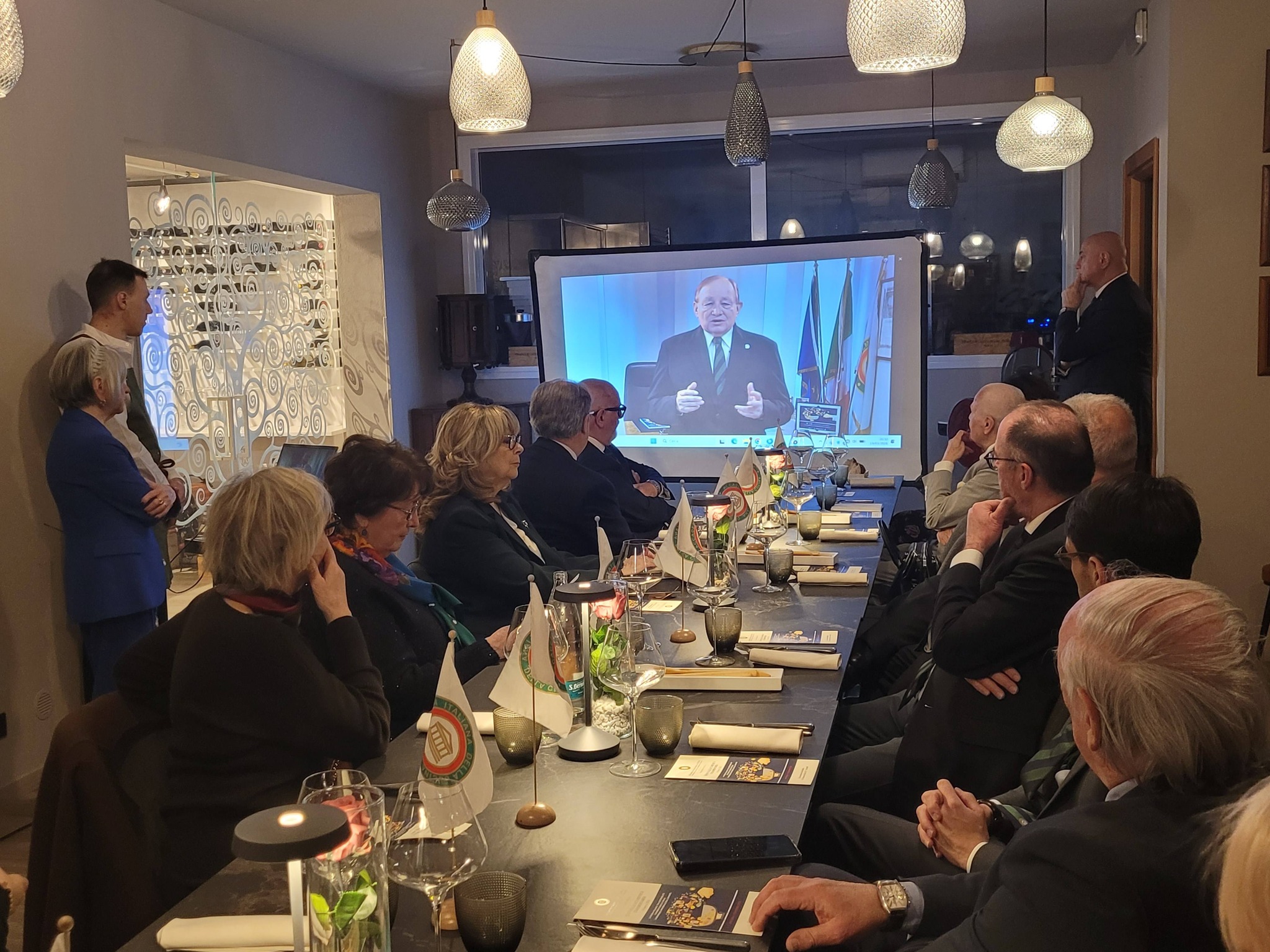 La Delegazione di Londra ha riunito circa quaranta partecipanti per una serata all’insegna dell’aperitivo all’italiana, presso l’elegante Hotel Hari a Belgravia, che ospita il ristorante italiano “Il Pampero”, che ha curato il servizio dell'evento. Gli ospiti hanno potuto degustare un menu creato per l'occasione dall' Head Chef Marco Quarta, di origine pugliese, che ha preparato diversi assaggi della sua terra e di altre regioni italiane. Marco ha illustrato i piatti serviti con cortesia e simpatia, offrendo spunti di conversazione con i presenti. Un ricco buffet ha visto alternarsi taglieri di salumi, formaggi e focacce appena sfornate, bocconcini di melanzane alla parmigiana e altri stuzzichini caldi e freddi. A seguire, risotto al radicchio e orecchiette alla Nerano, polpette di vitello con salsa di pomodoro e ‘nduja, il tutto accompagnato da Spumante Blanchus, Terre de la Custodia Maior Montefalco Sagrantino 2019 e Montefalco Grechetto 2023. Il servizio del personale di sala è stato eccellente e molto attento. Il Delegato ha ricordato che il 19 marzo si terrà l’Ecumenica Straordinaria presso il Ristorante Theo Randall, già insignito del Diploma di Buona Cucina, per celebrare la decisione dell’UNESCO di annoverare la Cucina Italiana tra i patrimoni immateriali dell’umanità, sottolineando il ruolo svolto dall’Accademia. Grande convivialità e allegria hanno contraddistinto l’incontro, con gli Accademici che, alla fine, hanno accolto la brigata di cucina con sentiti applausi. Non sono mancati ringraziamenti corali alle Simposiarche Federica Provolenti e Jacqueline McKay (Segretaria di Delegazione).