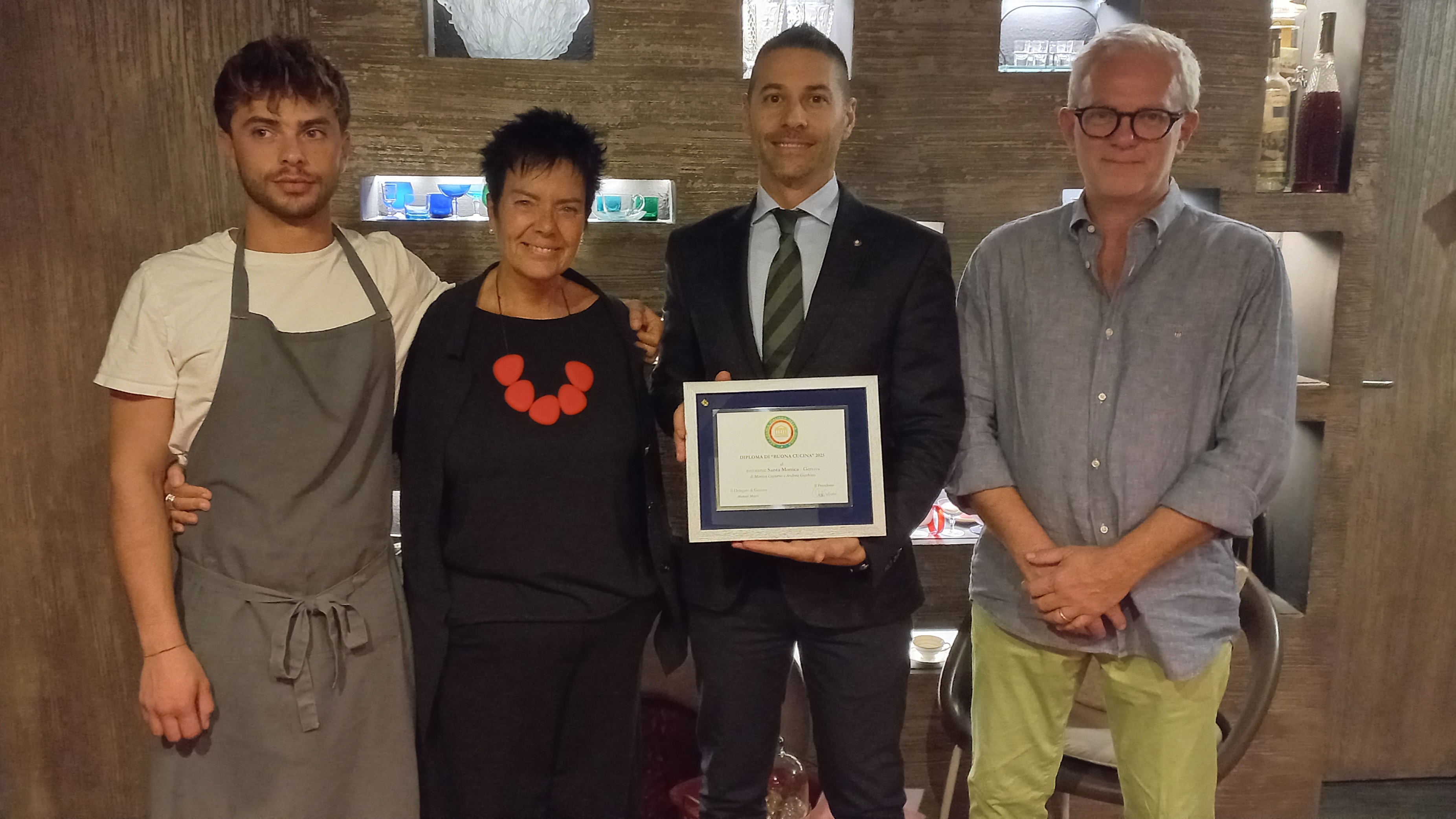 La Delegazione ha conferito i Diplomi di Cucina Eccellente e di Buona Cucina a due ristoranti simbolo della tradizione e della creatività gastronomica genovese. Il Diploma di Cucina Eccellente è stato assegnato al Ristorante Teresa dal 1968, storica insegna del quartiere di Pegli. Fondato dai genitori dell’attuale chef Tina Cosenza, oggi è guidato con passione da Tina insieme ai fratelli Mariella e Tonino. La proposta gastronomica, fedele alla tradizione ma impreziosita da eleganti rivisitazioni contemporanee, si distingue per la qualità della materia prima, la cura dei dettagli e la raffinatezza delle preparazioni. “Teresa dal 1968” incarna così l’equilibrio perfetto tra memoria e innovazione, divenendo punto di riferimento per chi ricerca autenticità e valore nella cucina del territorio. Il Diploma di Buona Cucina è stato invece attribuito al Ristorante Santamonica, un autentico “nido” affacciato sul mare di Genova. Il riconoscimento premia una cucina creativa ma profondamente legata alla tradizione, dove stagionalità e selezione accurata di prodotti locali sono principi fondanti. Lo chef Tomaso Giachino, giovane ma già esperto, interpreta la cucina ligure con sensibilità e originalità, proponendo piatti autentici e armoniosi che coniugano modernità e radici. Il risultato è una proposta gastronomica di grande equilibrio, che conferma il Santamonica tra le migliori espressioni della Delegazione.