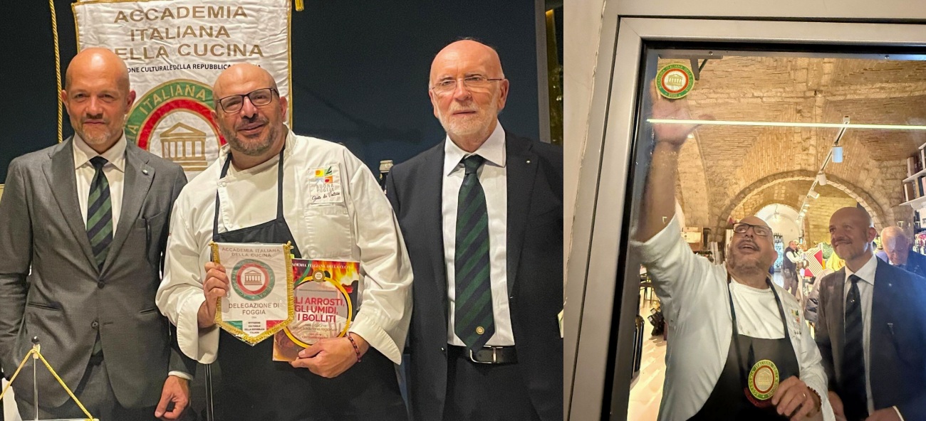 Per un improrogabile impegno professionale del Delegato Valerio Antonio Vinelli, la riunione conviviale dedicata al Tema dell’anno “Gli arrosti, gli umidi, i bolliti nella cucina tradizionale regionale” si è tenuta la settimana successiva. Simposiarca della serata è stato il Segretario Gianfranco Fenizi che ha scelto come location dell’evento il ristorante “Al Primo Piano” dello chef Nicola Russo, cultore della cucina locale, autore del volume "La Cucina Terrazzana di Capitanata" e appassionato narratore di storia e ricette della tradizione. Ha introdotto la serata il Delegato, che ha illustrato il significato della Cena Ecumenica e la sua origine, introdotta nel 2000 in occasione del Giubileo di quell’anno, e ha relazionato sul recente Forum dei Delegati svoltosi a Bari. È poi intervenuto il Simposiarca per illustrare le ragioni della scelta del locale e l’impostazione del menù, elaborato insieme allo chef, che a sua volta ha descritto le principali ricette e le tecniche di cottura adottate. Il menù ha previsto un’entrée con trancetti di provola e leprotto alla cacciatora, seguita da una minestra maritata con verdure selvatiche e cicatelli di grano arso con funghi e sbriciolata di maiale. A seguire, brasato di vitello in salsa di cipolle e caciocavallo podolico e bolliti con salsine assortite. La serata si è conclusa con la consegna a Nicola Russo del guidoncino della Delegazione, del volume del Tema dell’anno e della vetrofania dell’Accademia.