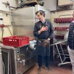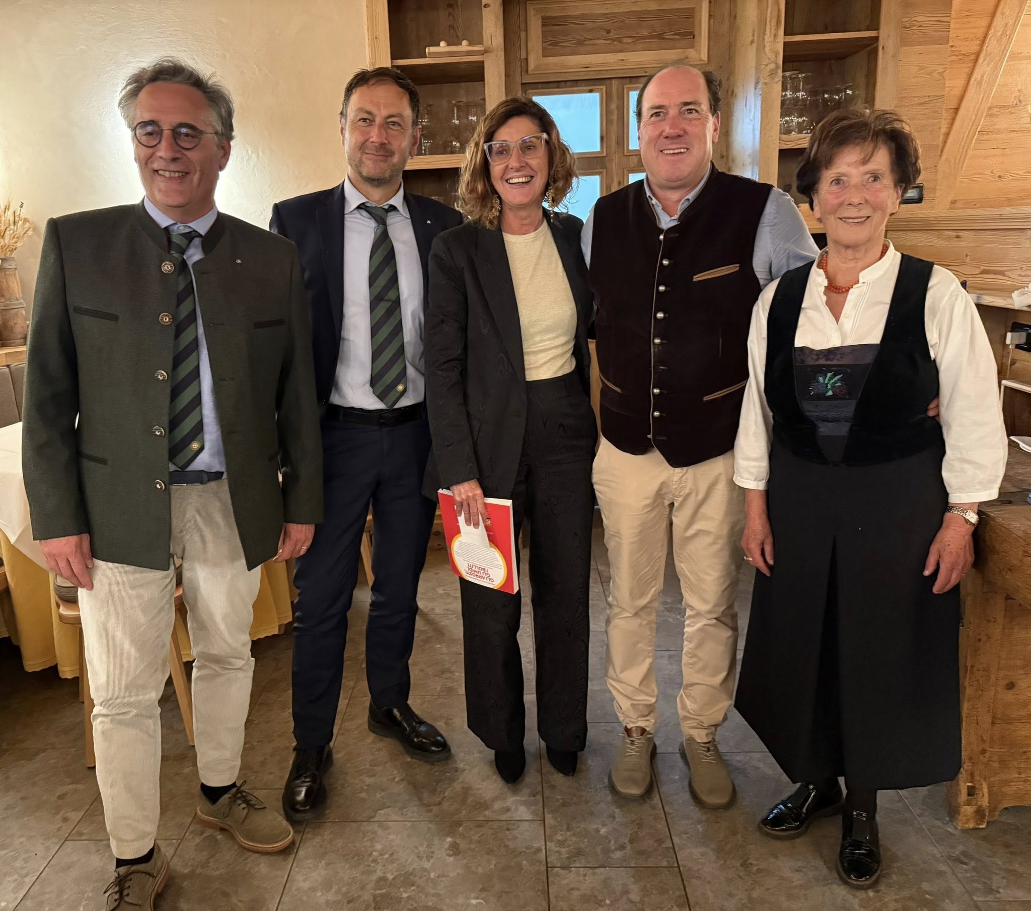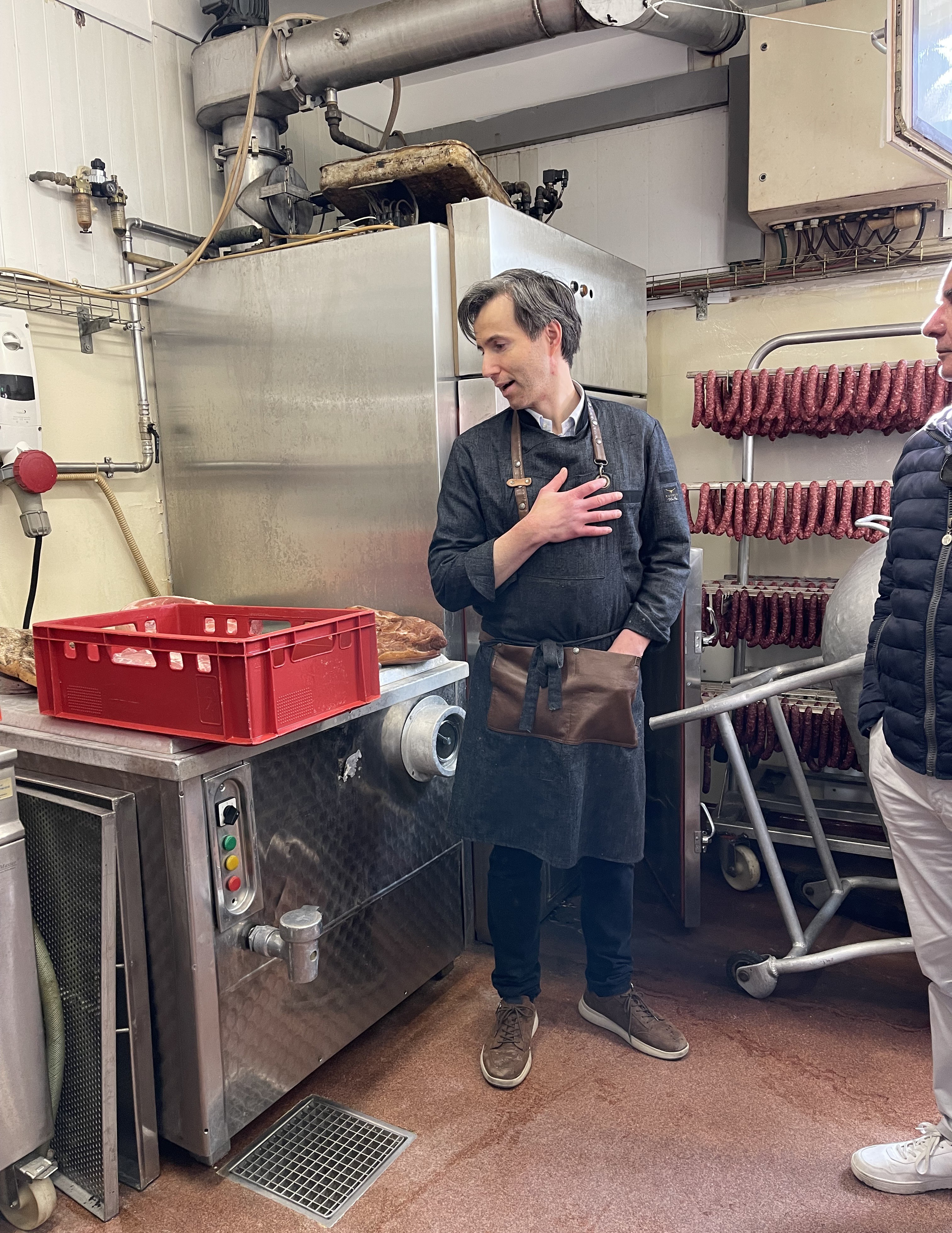 Isabella Jone Beretta, delegata di Bolzano, insieme ad alcuni Accademici, ha consegnato il diploma Dino Villani 2025 al signor Peter Kaufmann della macelleria Kaufmann di Cornaiano per il Bauernschinken – Prosciutto dei contadini. Il riconoscimento è stato conferito per la straordinaria qualità del prodotto, l’eccellenza delle materie prime e i metodi di produzione artigianali impiegati. Durante la visita alla macelleria, il signor Kaufmann e la moglie Linda hanno accolto la delegazione nel reparto di produzione, illustrando con precisione e passione tutte le fasi di lavorazione: dalla selezione delle carni all’uso dei macchinari. La spiegazione, ricca di dettagli tecnici e curiosità, ha messo in luce differenze significative tra le pratiche tradizionali e quelle moderne, nonché tra la produzione artigianale e quella industriale. Il Prosciutto dei contadini, riconosciuto come PAT (Prodotto Agroalimentare Tradizionale) della Provincia Autonoma di Bolzano, viene ancora oggi lavorato a mano con carne di maiale 100% locale. Il segreto del suo gusto unico risiede nella delicata miscela di spezie. Secondo la tradizione, i contadini mettevano a maturare le cosce di maiale a Natale per ottenere lo speck; poiché a Pasqua la stagionatura non era ancora completata, una parte della coscia veniva cotta, dando origine al prosciutto. Oggi la lavorazione prevede che la carne venga salata e speziata, lasciata in salamoia per alcuni giorni, poi affumicata, sigillata sottovuoto e cotta lentamente a vapore per 6-8 ore a bassa temperatura.