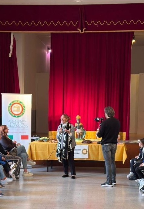 Si è rinnovato l’appuntamento con gli studenti delle classi quarte e quinte del Polo Urbani in occasione della Cena Ecumenica, iniziativa nata alcuni anni fa per condividere il tema annuale con gli studenti dell’IISS Urbani, promuovendo la conoscenza e la tutela delle tradizioni. Dopo i saluti istituzionali del Sindaco di Porto Sant’Elpidio e della Dirigente Scolastica Prof.ssa Laura D’Ignazi, si è svolto il convegno. Roberto Ferretti, Accademico e membro del Centro Studi Territoriale Marche, ha presentato il volume 2025 “Gli arrosti, gli umidi, i bolliti”. Sono intervenuti poi altri Accademici: Lando Siliquini, sugli aspetti nutrizionali delle carni; Cristoforo La Corte, sulla cacciagione e la selvaggina; Marisa Trobbiani, sulla razza bovina marchigiana e la carne a Km 0. Roberto Ferretti ha inoltre presentato i risultati di un questionario rivolto agli studenti, dal quale è emerso che stanno scomparendo le lunghe cotture e il valore del pasto festivo. La cena, a seguire, è stata preparata dagli studenti dell’Istituto Professionale per l’Enogastronomia e l’Accoglienza Turistica, coordinati dai docenti Prof. Lanciotti, Prof.ssa Burini, Prof.ssa Magnante e Prof.ssa Sebastiani. La Dirigente Laura D’Ignazi e il Delegato Fabio Torresi hanno sottolineato l’importanza di educare i giovani alla cucina locale e alla valorizzazione delle tradizioni. Applausi finali sono stati riservati ai Simposiarchi Luciana Cantarini e Roberto Ferretti, che hanno reso possibile l’evento, patrocinato dal Comune e dalla Provincia di Fermo.