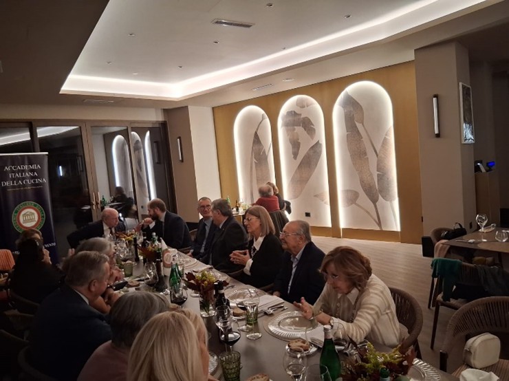 Un’occasione di ripasso e di crescita culturale per gli ospiti presenti: questo è stato, in sintesi, lo spirito della Conviviale Ecumenica 2025 nella Delegazione di Chieti. Gli Accademici si sono riuniti presso il ristorante “Il Casolare” di Miglianico, insignito proprio quest’anno dall’Accademia del “Diploma di Buona Cucina”. Durante la serata hanno potuto ascoltare la dotta relazione del Direttore del Centro Studi Territoriale, Maurizio Adezio, il quale, presentando il volume relativo al tema scelto per il 2025, ha chiarito i termini arrosto, bollito, umido, fricassea, salmì, brasato, stracotto, stufato, spezzatino e civet, collocando così nella giusta dimensione ogni riferimento alle preparazioni culinarie che la chef Antonina Di Giacomo ha dedicato all’ecumenica, sapientemente selezionate dal Simposiarca Rocco Del Conte. La serata è risultata gradevole e di alto livello, tecnico e culturale, impreziosita dalla presenza del prefetto di Chieti, Gaetano Cupello.