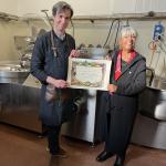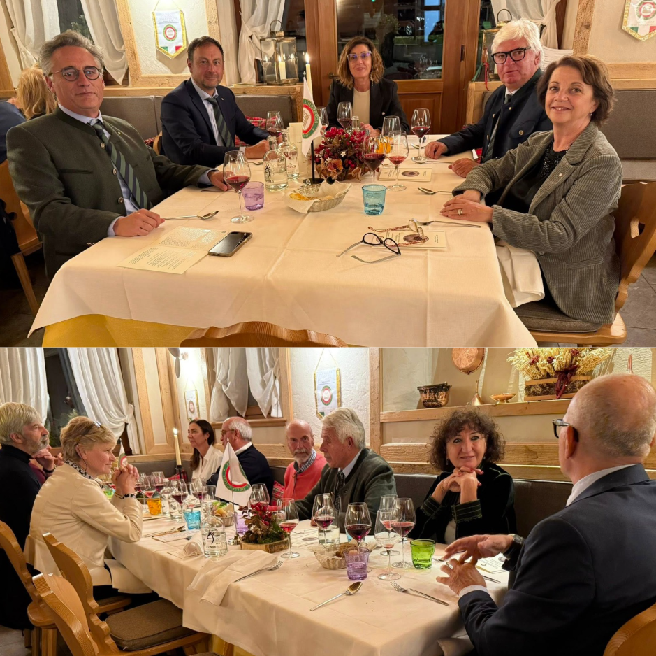 Riuscitissima conviviale ecumenica sul tema “Gli arrosti, gli umidi, i bolliti” alla Trattoria Vecchio Faust di Fiè allo Sciliar, che è uno dei ristoranti della Buona Tavola. Martha Fink ha accolto i presenti assieme al marito Gerhard nella sala da pranzo che sembra quella di una casa privata, tanto l’ambiente è caldo ed accogliente, e poi ha deliziato tutti con la sua meravigliosa cucina che riprende le ricette della nonna. Molto buoni ed accattivanti gli antipasti serviti a tavola come finger food, buone i tirtelen (frittelle) ed il formaggio grigio, degno di nota il sanguinaccio fatto come mousse con le mele. Eccezionale la crema di castagne. Morbidissimo lo stinco di vitello cotto al forno per sei ore a bassa temperatura e servito con le buone verdure, in particolare la zucca al forno. Squisita la mousse di castagne, leggeri e croccanti i krapfen, ottima anche la torta di mele. Durante la cena sono stati illustrati i piatti della tradizione inerenti al tema ecumenico. Non ci sarebbe stata serata migliore per consegnare i diplomi di 25 anni di appartenenza all’Accademia a Giancarlo Massari (foro 1) e di addirittura 40 anni a Paolo Pantozzi (foto 2). Alla fine con i ringraziamenti è stato consegnato a Martha e Gerhard libro “Gli arrosti, gli umidi, i bolliti” (foto 3).