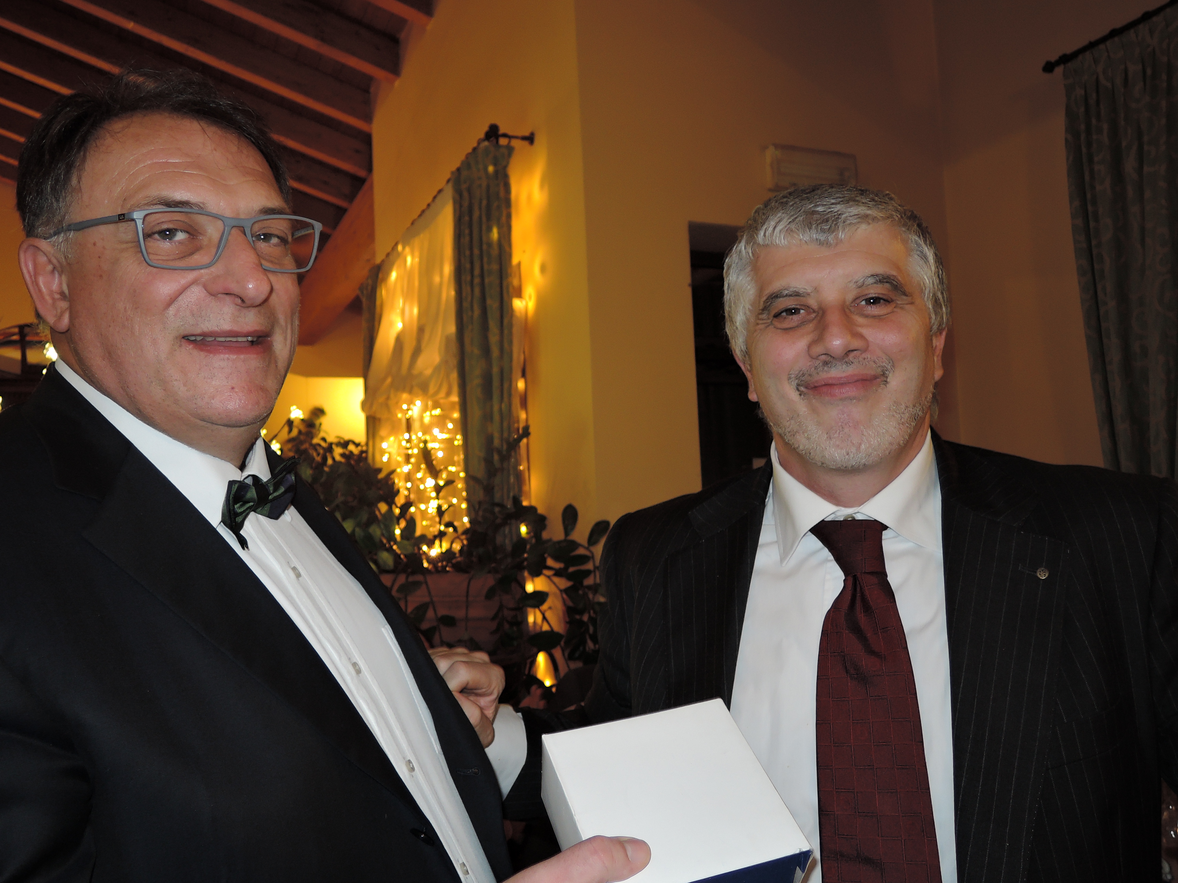 La riunione conviviale della Delegazione di Imola si è tenuta presso il ristorante "Il Campanaccio". Foto 1: presentazione e consegna del materiale associativo al neo Accademico Alfredo Di Maio. Foto 2: consegna del guidoncino dell'Accademia ai coniugi Mongardi, Luciano in cucina e Maria Grazia in sala, titolari del locale.