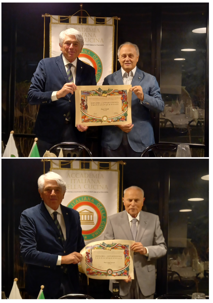 Gli Accademici della Delegazione di Alessandria si sono ritrovati per la seconda riunione conviviale dell’anno presso il ristorante Donatella Bistrot ad Oviglio in occasione degli auguri di Pasqua (foto 1). Ospiti della Delegazione, Elisabetta Cocito, Direttore del Centro Studi Territoriale Piemonte e Pietro Caire, Delegato del Monferrato (foto 2 da destra: Delegato Matteo Pastorino, Elisabetta Cocito e Pietro Caire). Chiarissimo il relatore e Simposiarca della giornata, il Vice Delegato Giorgio Borsino (foto 3), il quale, oltre a decantare i piatti presenti nell’ottimo menù, ha dato il via ad una serie di interventi che, come illustrato dal Delegato Matteo Pastorino, verteranno di volta in volta sulle eccellenze della provincia di Alessandria. Un convivio all’insegna dell’amicizia volta alla conoscenza dei prodotti locali presenti nel menù che si è concluso con la consegna della vetrofania dell’Accademia 2023 alla titolare del locale, la signora Donatella Vogogna (foto 4) a cui sono andati gli apprezzamenti degli Accademici per gli ottimi piatti serviti.
