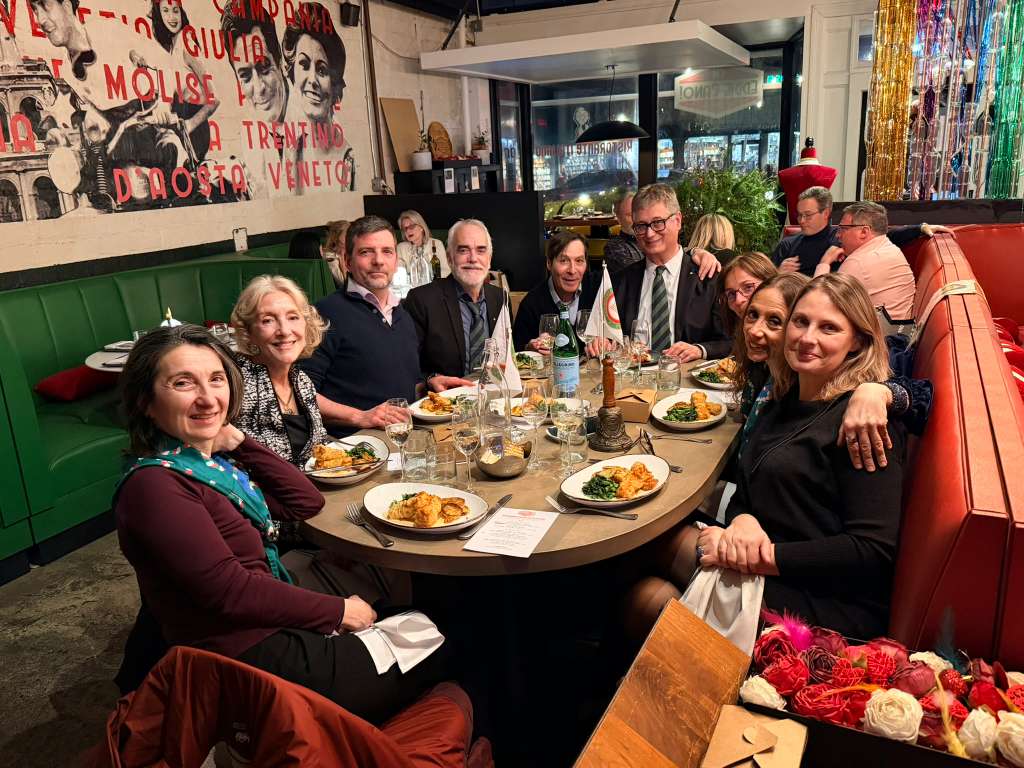 La Delegazione di Londra ha riunito circa quaranta partecipanti per una serata all’insegna dell’aperitivo all’italiana, presso l’elegante Hotel Hari a Belgravia, che ospita il ristorante italiano “Il Pampero”, che ha curato il servizio dell'evento. Gli ospiti hanno potuto degustare un menu creato per l'occasione dall' Head Chef Marco Quarta, di origine pugliese, che ha preparato diversi assaggi della sua terra e di altre regioni italiane. Marco ha illustrato i piatti serviti con cortesia e simpatia, offrendo spunti di conversazione con i presenti. Un ricco buffet ha visto alternarsi taglieri di salumi, formaggi e focacce appena sfornate, bocconcini di melanzane alla parmigiana e altri stuzzichini caldi e freddi. A seguire, risotto al radicchio e orecchiette alla Nerano, polpette di vitello con salsa di pomodoro e ‘nduja, il tutto accompagnato da Spumante Blanchus, Terre de la Custodia Maior Montefalco Sagrantino 2019 e Montefalco Grechetto 2023. Il servizio del personale di sala è stato eccellente e molto attento. Il Delegato ha ricordato che il 19 marzo si terrà l’Ecumenica Straordinaria presso il Ristorante Theo Randall, già insignito del Diploma di Buona Cucina, per celebrare la decisione dell’UNESCO di annoverare la Cucina Italiana tra i patrimoni immateriali dell’umanità, sottolineando il ruolo svolto dall’Accademia. Grande convivialità e allegria hanno contraddistinto l’incontro, con gli Accademici che, alla fine, hanno accolto la brigata di cucina con sentiti applausi. Non sono mancati ringraziamenti corali alle Simposiarche Federica Provolenti e Jacqueline McKay (Segretaria di Delegazione).