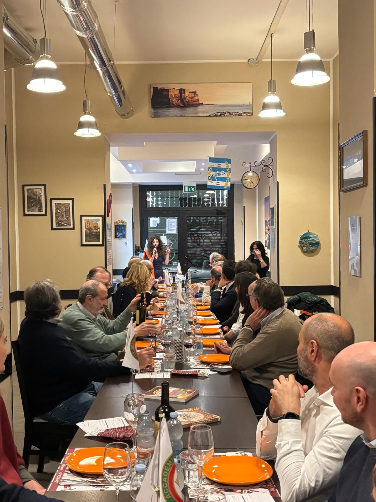 A tutta Calabria! Così si può descrivere la riunione conviviale di febbraio al ristorante Cheese & Cuts, interamente dedicata alla regione e omaggio a una terra caparbia e legata alle proprie tradizioni. Lo chef Vincenzo Varamo, calabrese verace, ha presentato un menu di piatti iconici di una cucina povera ma ricca di carattere e sapori intensi, che raccontano la storia e l’identità di un territorio fedele ai suoi ingredienti micro-territoriali. Fondamentali gli interventi dell’Accademico Pierpaolo Maroni e di Tony Apollaro, entrambi di origine calabrese: il primo ha illustrato il mosaico di contrasti che definisce la Calabria e che, invece di costituire un limite, contribuiscono a creare l’essenza e l’identità della regione; il secondo ha raccontato curiosità sui piatti del menu: la frisella nata come pane da viaggio, la stroncatura un tempo scarto della molitura e oggi prelibatezza, la capra simbolo della cultura contadina e i “turdiddri”, dolcetti semplici ma ricchi di memoria. Non è mancato l’intervento di Giovanni Costantino, ormai “firma emotiva” delle serate regionali, con la recitazione affettuosamente ironica di “Maledetta Calabria… ma meno male che ci sei”. Una serata che ha ricreato l’atmosfera di una sagra di paese, offrendo un’esperienza sensoriale e culturale immersiva, ben oltre la semplice degustazione.