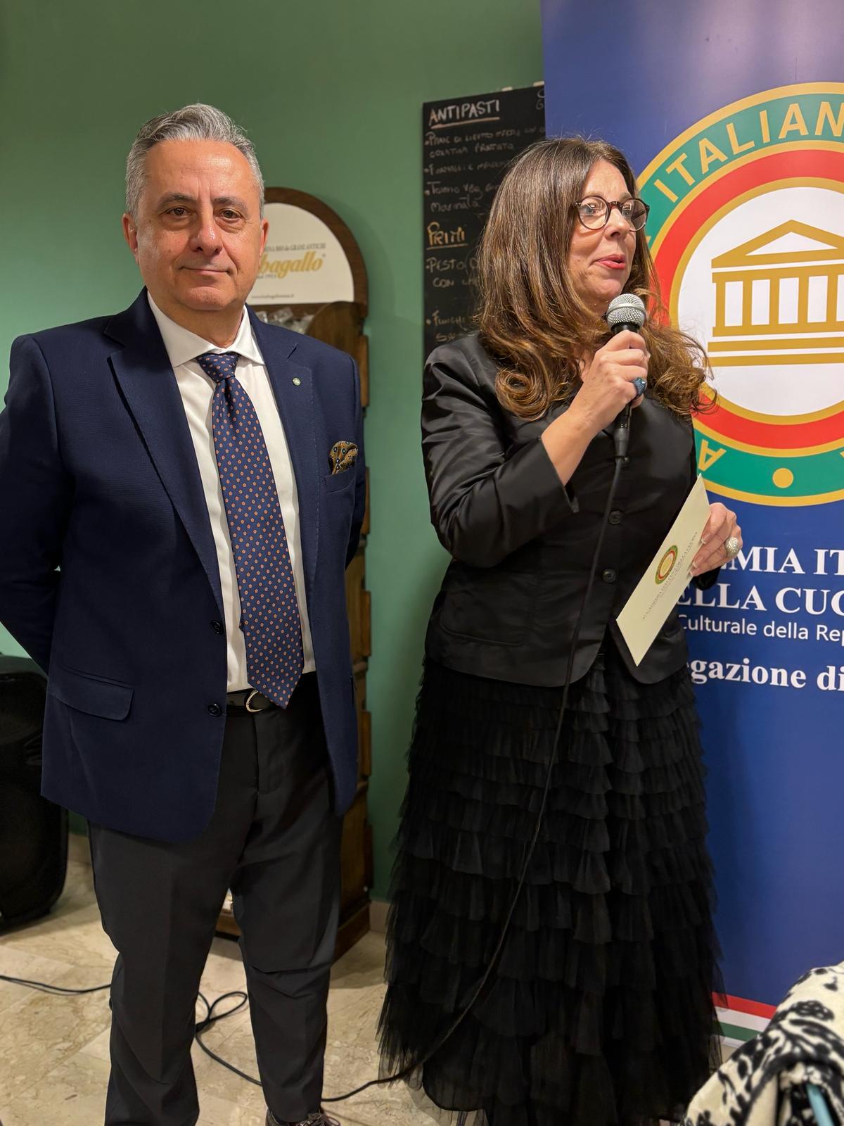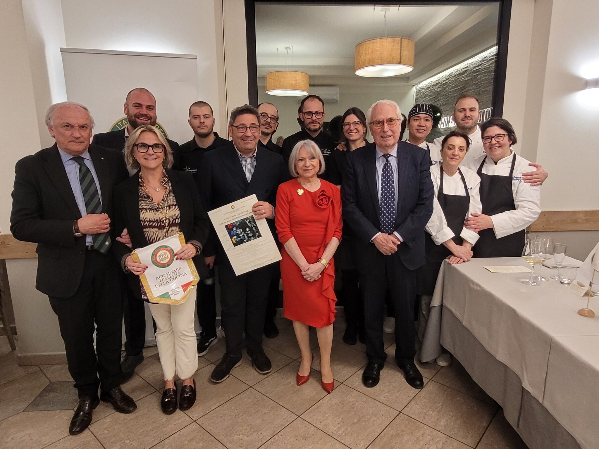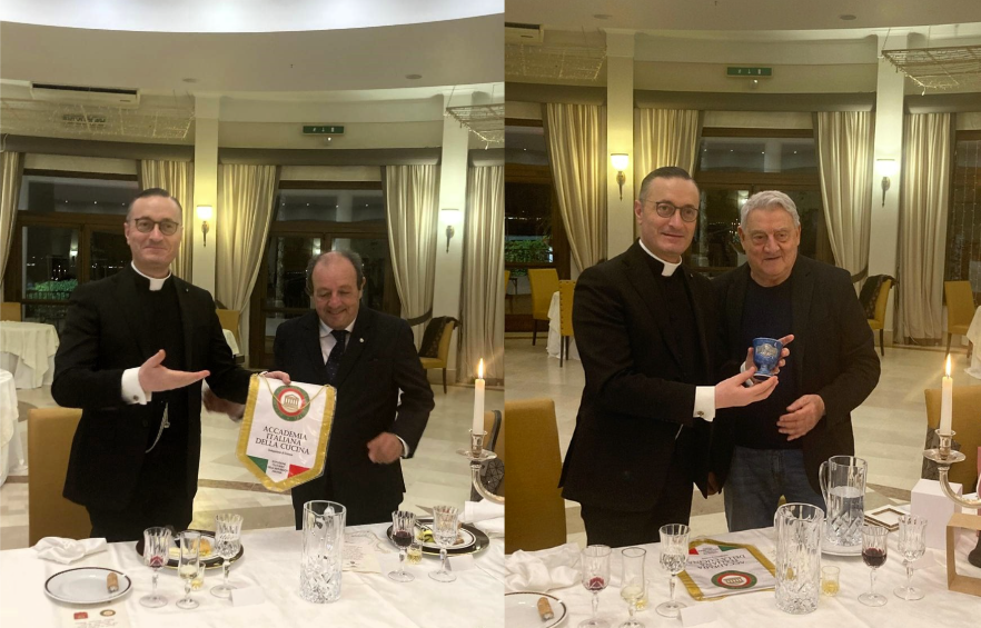 Il ristorante Ama Experience di Benevento ha ospitato l’annuale Cena Ecumenica della Delegazione di Benevento. Quest’anno il tema era “Gli arrosti, gli umidi ed i bolliti della tradizione regionale”. Come ogni anno l’Accademia ha pubblicato un relativo volume (per i tipi di Bolis Edizioni) che è stato presentato dalla Delegata all’inizio della Conviviale e in seguito distribuito agli Accademici. A incorniciare l’evento, l’intervento di Luciano Lombardi. Già giornalista Rai, noto quirinalista, Lombardi ha svolto una relazione che ripercorreva esperienze personali al fianco di grandi intervistati, come Oliver Sacks e Ancel Keys. Memorie, certo, ma più attuali che mai. Lombardi ha invitato i presenti ad essere i custodi del buon mangiare e del mangiar sano, ricordando il contributo dei due scienziati. Il menù, concordato tra lo chef Nazzareno Parisio e la Simposiarca, ha tenuto fede al tema dell’anno, proponendo un secondo piatto che rispettava, allo stesso tempo, l’identità di questo territorio: un cappello del prete, cotto a bassa temperatura, e stufato nel pregiato aglianico del Sannio. Un taglio di carne umile, nobilitato, ammorbidito e insaporito, dal vino delle colline circostanti. Al termine della serata è giunto il plauso degli Accademici al menu, e la Delegata ha consegnato il guidoncino e la vetrofania 2025 dell’Accademia.
