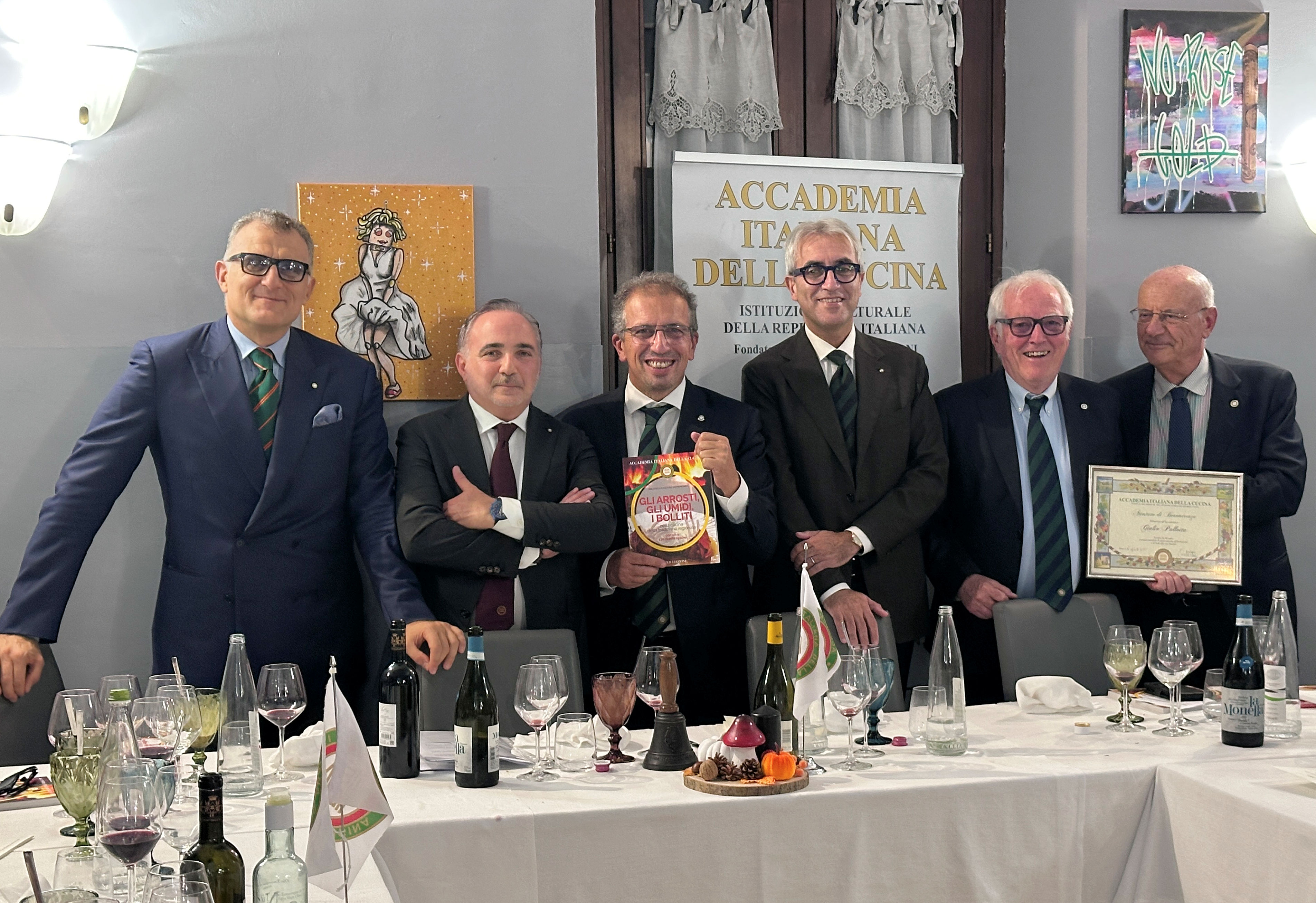 Il tema di quest’anno è stato interpretato dai Simposiarchi della Delegazione di Terni, Federico Carli e Giuseppe Malvetani, con uno sguardo ampio e coraggioso, capace di oltrepassare i confini territoriali per tracciare un percorso che ha attraversato tutto lo Stivale. Il viaggio gastronomico è iniziato con un bollito misto accompagnato da mostarda di Cremona, giardiniera e salsa verde, per poi proseguire con le mezze maniche alla coda alla vaccinara, simbolo del quinto quarto e della cucina popolare, capace di trasformare la necessità in virtù. Il secondo, un piccione ad arrosto morto con broccoletti ripassati, ha riportato il racconto alle radici umbre. Anche il percorso enologico, coerente e narrativo, ha avuto un ruolo centrale, così come l’olio extravergine “Nuovo” dell’Azienda Malvetani, a suggellare il legame con il territorio. Momento di particolare rilievo è stato l’intervento di Giuseppe Fatati, direttore del Centro Studi Territoriale Umbria dell’Accademia, che ha proposto una visione attuale della dieta mediterranea: non uno schema rigido, ma uno stile di vita sostenibile che unisce salute, territorio e comunità. La Cena Ecumenica si è così inserita in un più ampio progetto di valorizzazione della cultura culinaria italiana, arricchito quest’anno dall’ingresso del nuovo Accademico Andrea Carducci e dalla celebrazione dei 40 anni di appartenenza di Giulio Pallotta, esempio di dedizione e passione.