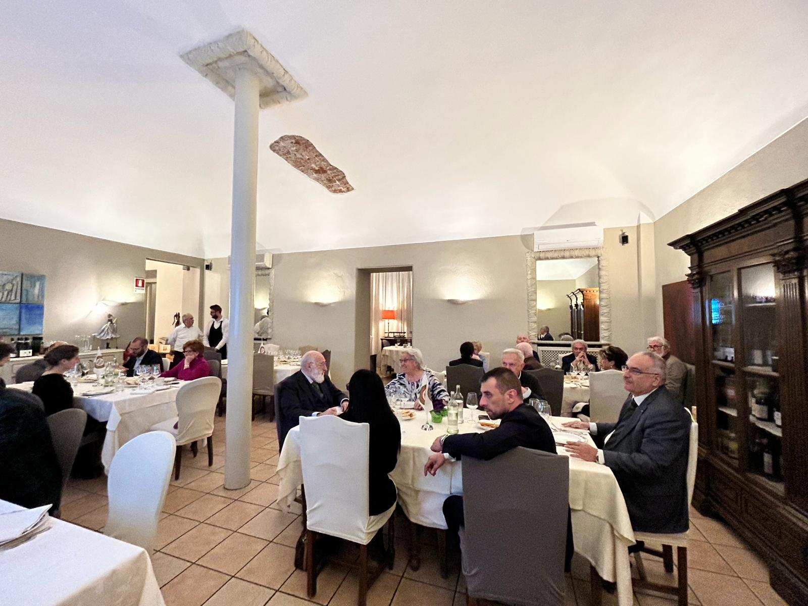 Partecipata e apprezzata conviviale autunnale della Delegazione di Rovereto e del Garda Trentino presso il ristorante “Tema” di Rovereto, organizzata dai Simposiarchi Maria Antonietta Tezzele e Francesco Pallaver, con la partecipazione del Delegato di Verona Fabrizio Farinati e del campione di ciclismo Francesco Moser. Molto interessante la relazione della Consigliera laica del C.S.M., avv. Claudia Eccher, sul tema: “Ruolo costituzionale e funzioni del Consiglio Superiore della Magistratura”. Ospiti della serata: il Presidente del Tribunale di Rovereto, dott. Giulio Adilardi; la Sindaca del Comune di Rovereto, arch. Giulia Robol; il Presidente del Tribunale di Verona e Accademico della Delegazione scaligera, dott. Ernesto D’Amico; il Presidente dell’APT Garda Dolomiti S.p.A., Silvio Rigatti.
