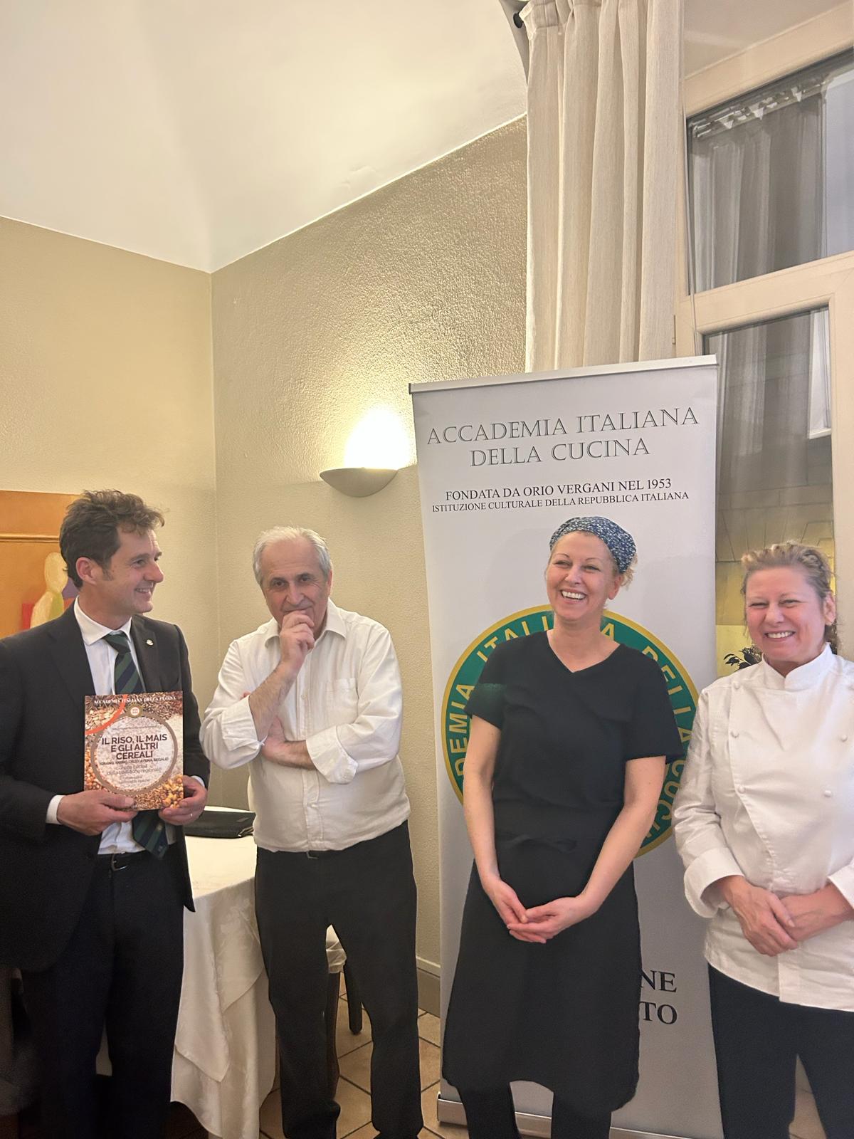 In Valle Cervo, ai piedi delle Alpi Biellesi, si trova una splendida struttura ideata da Barbara Varese che, attraverso un restauro conservativo e la riqualificazione dell'intero borgo, ha riadattato la storica dimora di famiglia a Country House, chiamata “La Bursch”, ovvero la casa in dialetto Walser. È un luogo immerso nella natura, dall'atmosfera magica, ricca di fascino e mistero. Per questo motivo, la Delegazione di Biella e il Simposiarca Gian Franco Albertazzi hanno scelto il ristorante de La Bursch per una serata dedicata ai sapori d'autunno, introdotta dall'agronomo Alfredo Sunder dell'Associazione Biellese del Castagno. Gli Accademici sono stati accolti nella sala del biliardo dove è stato servito l'aperitivo e successivamente accompagnati ai tavoli, riccamente ed elegantemente allestiti nel salotto adiacente all'antica cucina storica. Ottima la cena a base di castagne, funghi e zucca, preparata dalla giovane chef Erika Gotta. La serata è stata gioiosa, rallegrata dal fuoco del camino e dall'accogliente ospitalità della padrona di casa Barbara e del marito, che, insieme al loro staff competente, hanno coccolato gli ospiti con dovizia di attenzioni. Alla fine, la Delegata Marialuisa Bertotto ha consegnato loro dei meritati omaggi accademici.