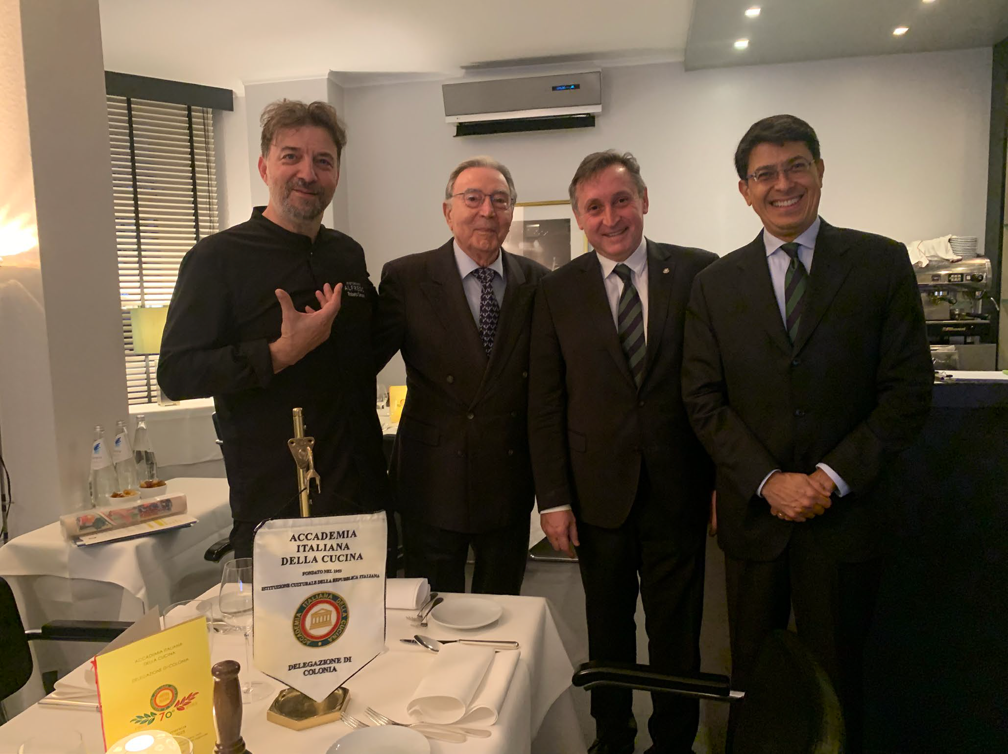 Il convivio di maggio si è svolto da “Torno Subito”, di recente apertura a Singapore e terzo ristorante in estremo oriente del grande Massimo Bottura. Qui l’executive chef Alessio Pirozzi, dopo il successo avuto nell’omonimo ristorante di Dubai, porta avanti la “tradizione innovativa” della Cucina di Bottura. Il concept culinario del ristorante, che rende omaggio all'Italia degli anni Sessanta e alle spiagge della Romagna, ha creato un ambiente ottimale e del tutto informale per assaggiare piatti di alta cucina, dai tortellini alla crema di Parmigiano al “Tiramisubito”, ovvero un’interpretazione d’autore del famoso dolce italiano. Il Simposiarca Giorgio Maria Rosica, coadiuvato dal consultore Maurizia Debiaggi, ha introdotto la serata con un saluto a tutti gli ospiti e con riflessioni culturali riguardanti la tradizione e l’innovazione nei piatti del grande “Massimo”. La serata si è svolta in un clima di grande convivialità ed è stata un’occasione per salutare il segretario-tesoriere Chiara Randi che lascerà Singapore nei prossimi mesi. Presenti molti Accademici e ospiti illustri tra cui l’Ambasciatore italiano Dante Brandi (Accademico onorario), Il responsabile dell’Italian Trade Agency Giorgio Calveri e l’addetto finanziario dell’Ambasciata italiana Pietro Ginefra.