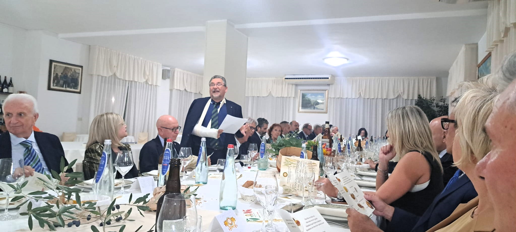 Gli Accademici sono stati accolti sui dolci pendii della Repubblica di San Marino in una ampia e luminosa sala del ristorante “La Clessidra” da cui si poteva ammirare la costa adriatica del riminese. Il ristorante è a conduzione familiare ed è specializzato in cucina di pesce ma propone anche piatti tipici romagnoli, primi piatti, pizze con forno a legna e dolci. Molto apprezzato l’antipasto che ben esaltava i sapori del mare sottostante. Gli strozzapreti hanno manifestato tutto il loro carattere artigianale. Il brodetto caratterizzato dall’eccellenza delle materie prime e cucinato con una ricca varietà di pesci e molluschi ha ricalcato i canoni della tradizione. La creatività della chef Rosa ha dato libero sfogo alla fantasia, realizzando un dolce che ha riscontrato il plauso unanime dei presenti. Infine, più che buono l’abbinamento con i vini. In un clima di serenità ed amicizia, la serata si è conclusa con il saluto del Delegato Stefano Piva e un arrivederci al prossimo appuntamento accademico.