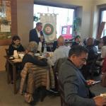 Per la riunione conviviale di febbraio gli Accademici si sono riuniti presso il ristorante “L’O di Giotto” all’interno del Park Hotel Ripaverde a Borgo San Lorenzo (FI). La serata è stata organizzata nei minimi particolari dall’Accademico Giulio Cappetti che ha attentamente studiato l’abbinamento di vini del territorio ai piatti, preparati con cura e passione da Diego Esposito giovane chef di origine abruzzese. Un’occasione per monitorare la ristorazione d’albergo, che è risultata particolarmente attenta alla selezione degli ingredienti e orientata verso la scelta della materia prima locale. Il Convivio si è concluso con i ringraziamenti allo chef e alla sua brigata e con la consegna del guidoncino da parte della Delegata Monica Sforzini. Foto 1. Il Simposiarca Giulio Cappetti durante la presentazione del menu. Foto 2. Un momento della serata. Foto 3. Lo chef Diego Esposito con il personale di cucina e di sala, il Simposiarca e la Delegata. Foto 4. Il menu con alcuni piatti.
