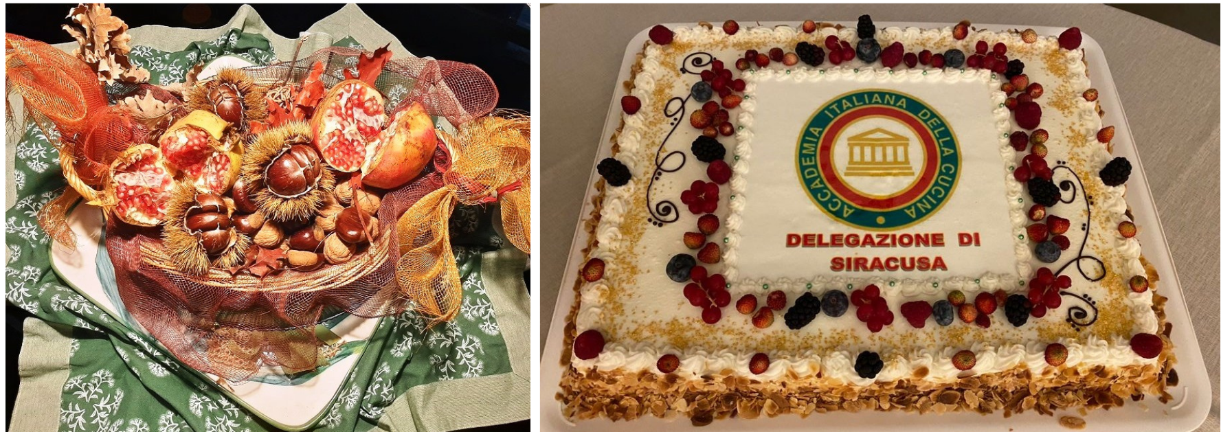 La Delegazione di Siracusa ha visitato il Ristorante “Mammaiabica” dove gli Accademici hanno condiviso il convivio ad un unico tavolo (foto 1). Simposiarca il Delegato Tamburini (foto 2) che, dopo il brindisi di benvenuto, ha poi relazionato sul tema molto apprezzato “Viaggiare cucinando e gustando anche con i cibi che ci rendono felici”. È stata poi servita in tavola la cena, una sequenza di pietanze gustose e gradevoli realizzate dallo staff di cucina del maestro Gianni Cavallaro utilizzando le materie prime del territorio. Il menu (foto 4): arancinetta con nero di seppia e ricotta di buccheri su patata novella di Siracusa; frittura di alici con cipolla rossa caramellata; lolli con ragù bianco di cernia; cavati con farina di carrube con zucchine, menta, buccia di limone e bottarga; trancio di ombrina con zafferano e limone con contorno di patate; scurzunera; bignè con crema di nocciola dei Nebrodi. In buon abbinamento i vini della cantina Colosi delle Isole Eolie-Me: “Salina” Igt bianco e rosso; e Malvasia delle Lipari DOC “Najh”, proposti in tavola dalla maestra di sala Laura Foti. Gli Accademici hanno potuto assistere alla preparazione delle pietanze, data la cucina completamente a vista. Infine la consegna del guidoncino e della vetrofania dell’Accademia allo staff di cucina e di sala (foto 3) con un lungo applauso di gradimento degli Accademici.