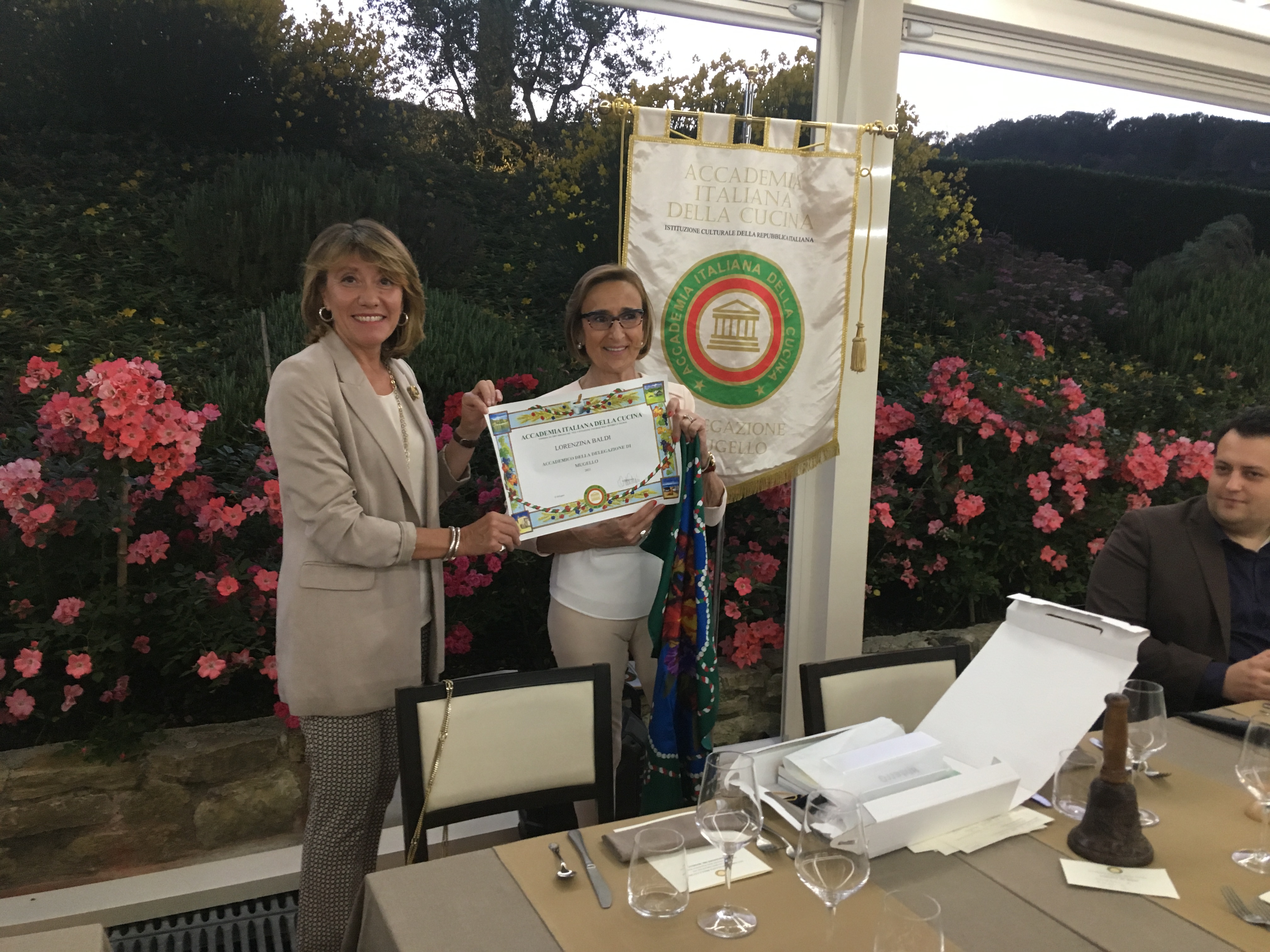 Tra passato e futuro in una serata di carnevale. Una tavola festosa con i colori dell’Accademia, quelli della identità italiana, giocati da bandierine e beneauguranti rosse primule vestite di bianco verde, per una serata istituzionale con resoconti del 2021 e progetti per i primi mesi del 2022. Solo a fine febbraio la Delegazione ha potuto riprendere i convivi, rassicurati dalla migliore situazione pandemica generale. E gli Accademici hanno festeggiato il giovedì grasso con un menu invernale, giocato tra fritti e lessi, ben preparati da Antonella (in foto 2 con la Delegata Rosalba Caffo Dallari) e Luca del ristorante Zoello di Castelvetro di Modena, che vanta una tradizione di accoglienza, simpatia, buona cucina casalinga e piacevole atmosfera familiare. Tra lambrusco di Sorbara e Grasparossa, racconti di piatti e prodotti alla ricerca di tipicità attraverso i diversi nomi, anche dialettali, e facezie, la serata si è svolta in un clima di armonia collettiva. Un inizio di buon augurio.